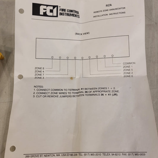 FCI RZA8 Fire Alarm Annunciator 1100-0516 New Open Box 8-channel