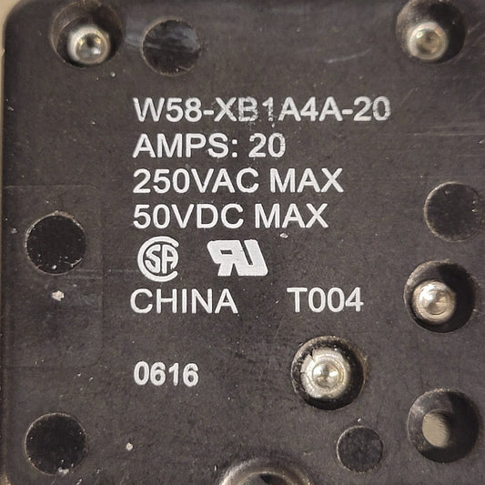 Tyco Electronics W58-XB1A4A-20 Thermal Circuit Breaker 250VAC 50VDC 20A max