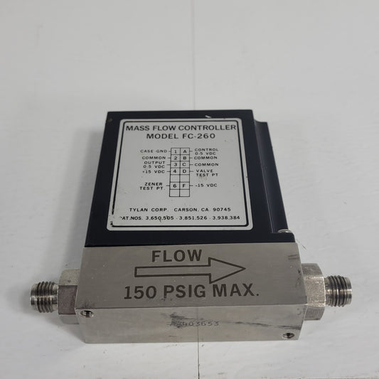 Tylan FC-260 100SCCM Air Mass Flow Controller 150PSIG Flow Max elastomer-sealed