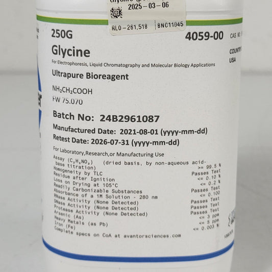 Avantor J.T. Baker 4059-00 Glycine NH2CH2COOH Ultrapure Bioreagent 250G