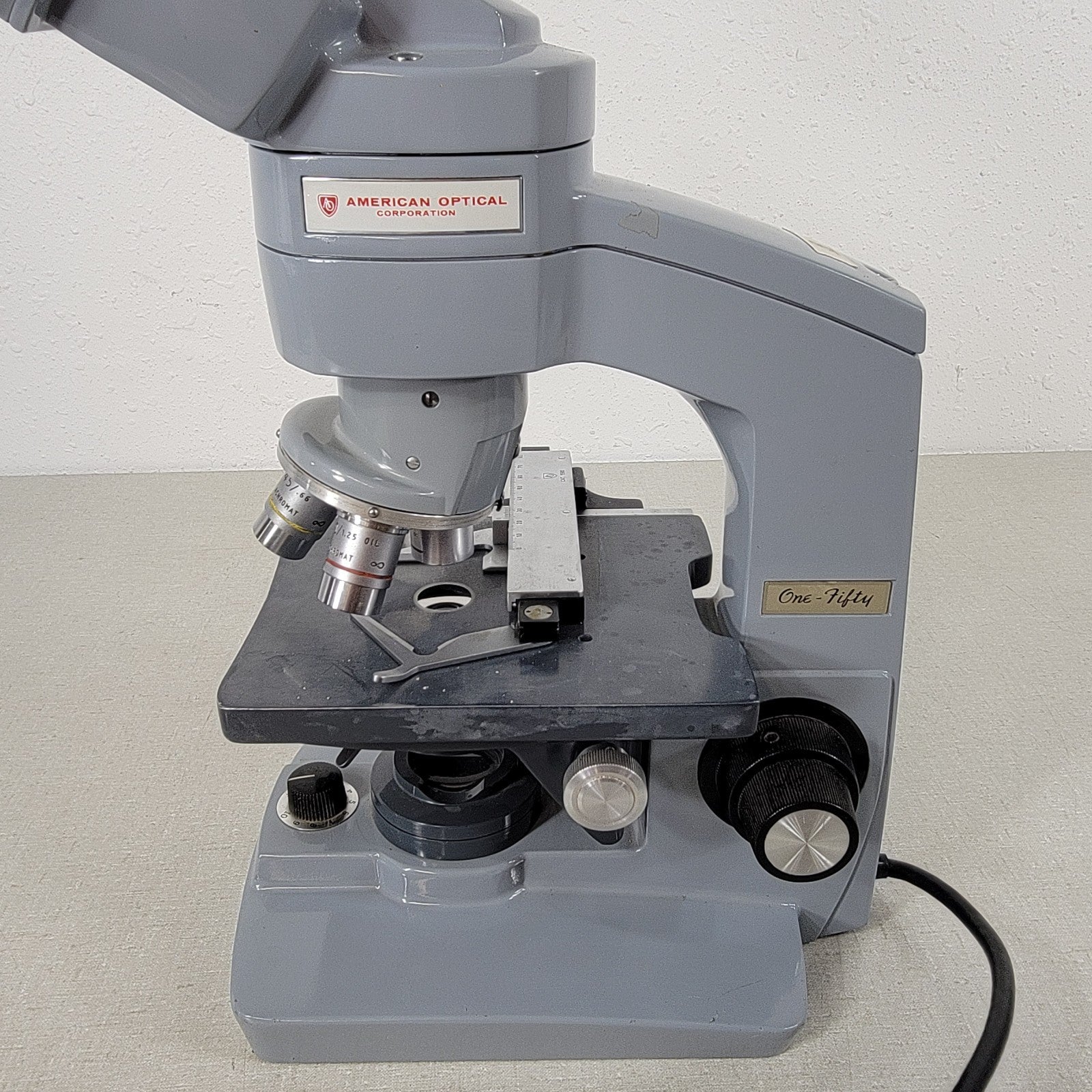 American Optical AO one-fifty Microscope 4x 10x 45x 100x Magnification w/ Light Source