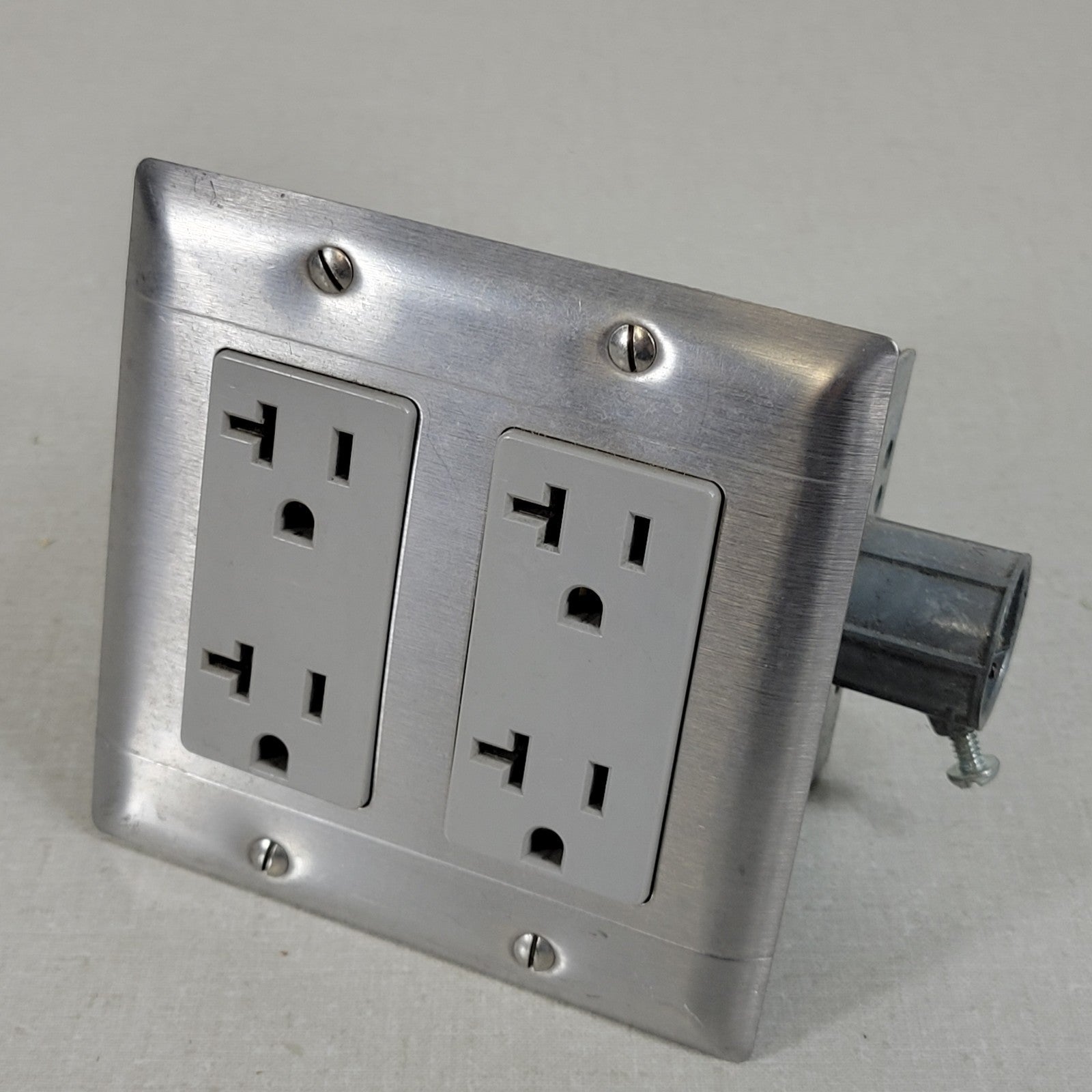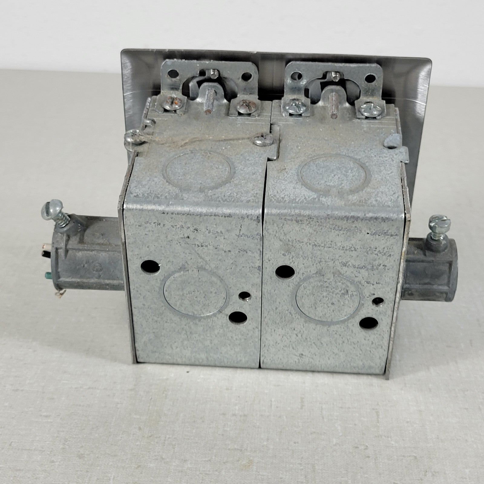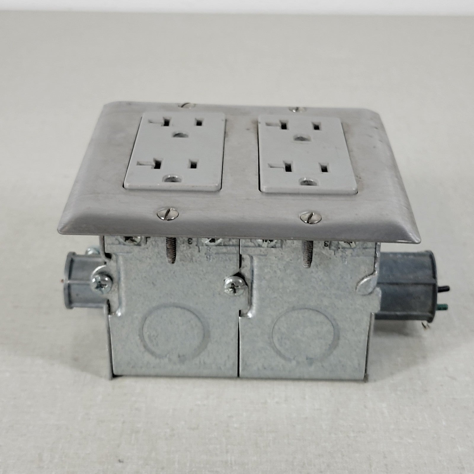 Built-In Double-Gang Work Bench Outlet Box Middle for Mains Connection 120V 20A 2-Gang Stainless Steel Plate