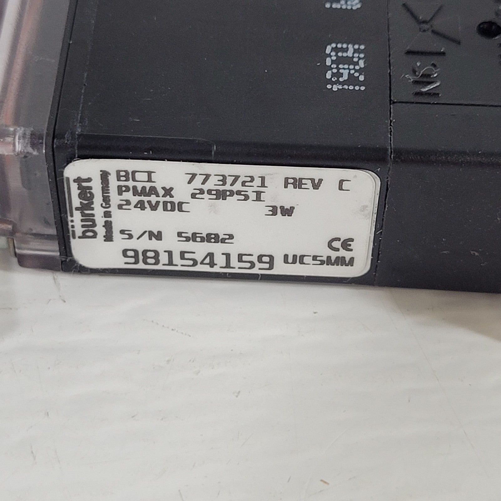 Burkert 773721 Solenoid Valve W22MM 24VDC 3W 29psi Max UC5MM Three Way 98154159