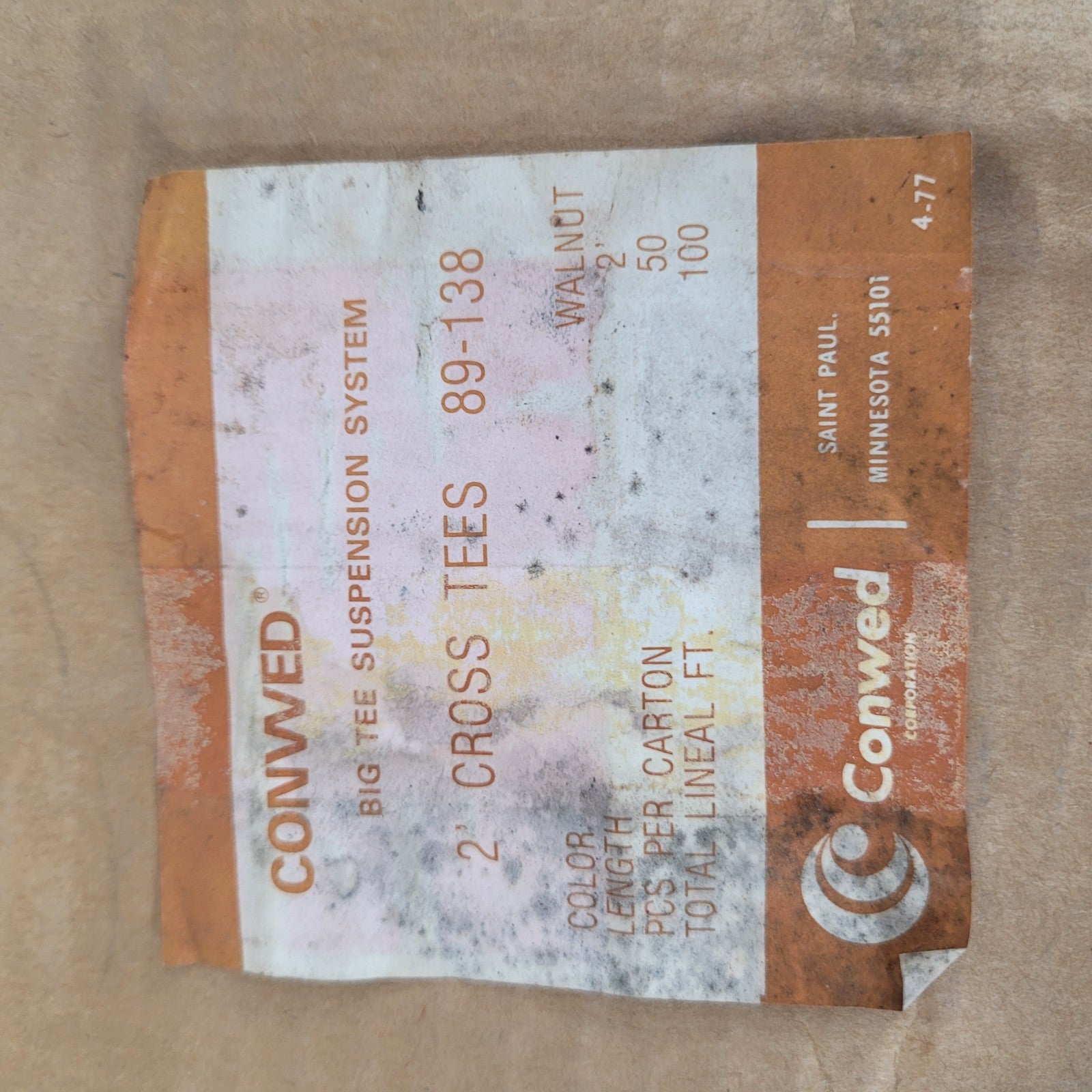 Conwed 89-138 Walnut Grain 2' Big Tee Suspension System Box Of 50 Piece 100 L.F. Drop Ceiling