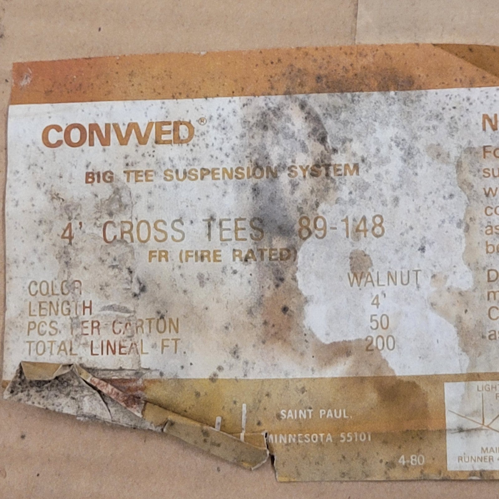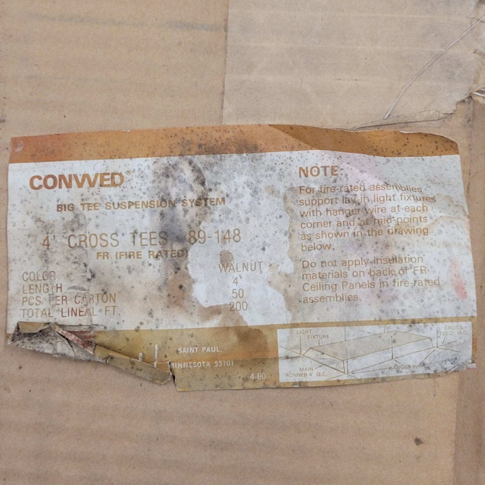Conwed 89-148 Walnut 4' Drop Ceiling Cross Tee Box Of 50 Piece Steel Framing Four Foot Feet