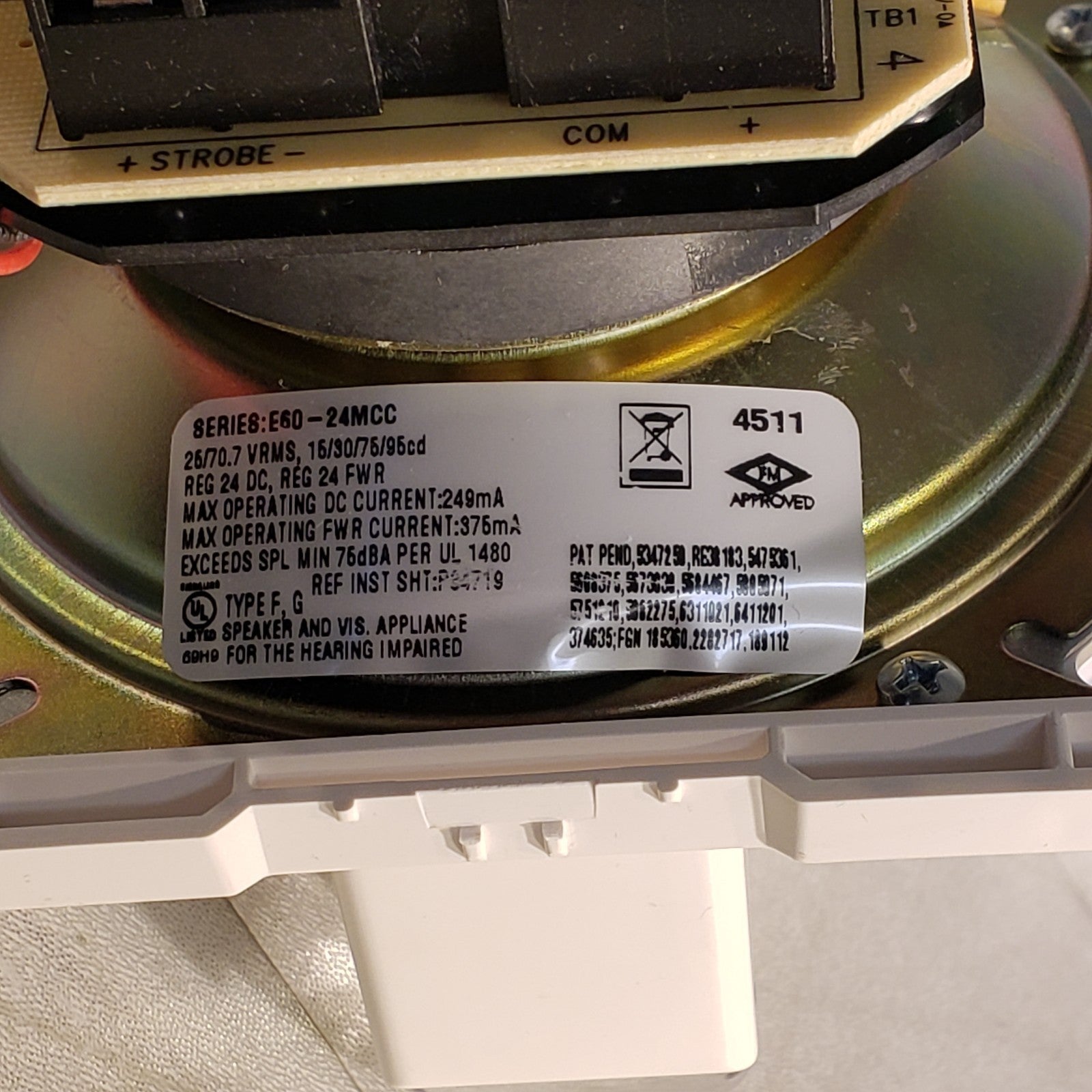Cooper Wheelock E60-24MCC-FW Fire Alarm With Speaker And Strobe Light 113747