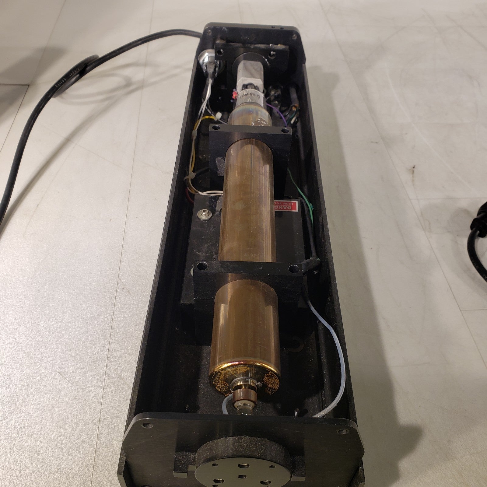 The unit was not plugged in or tested and appears to not be functioning. The key to turn on the system was also not present. There was no cover to the laser enclosure as well.