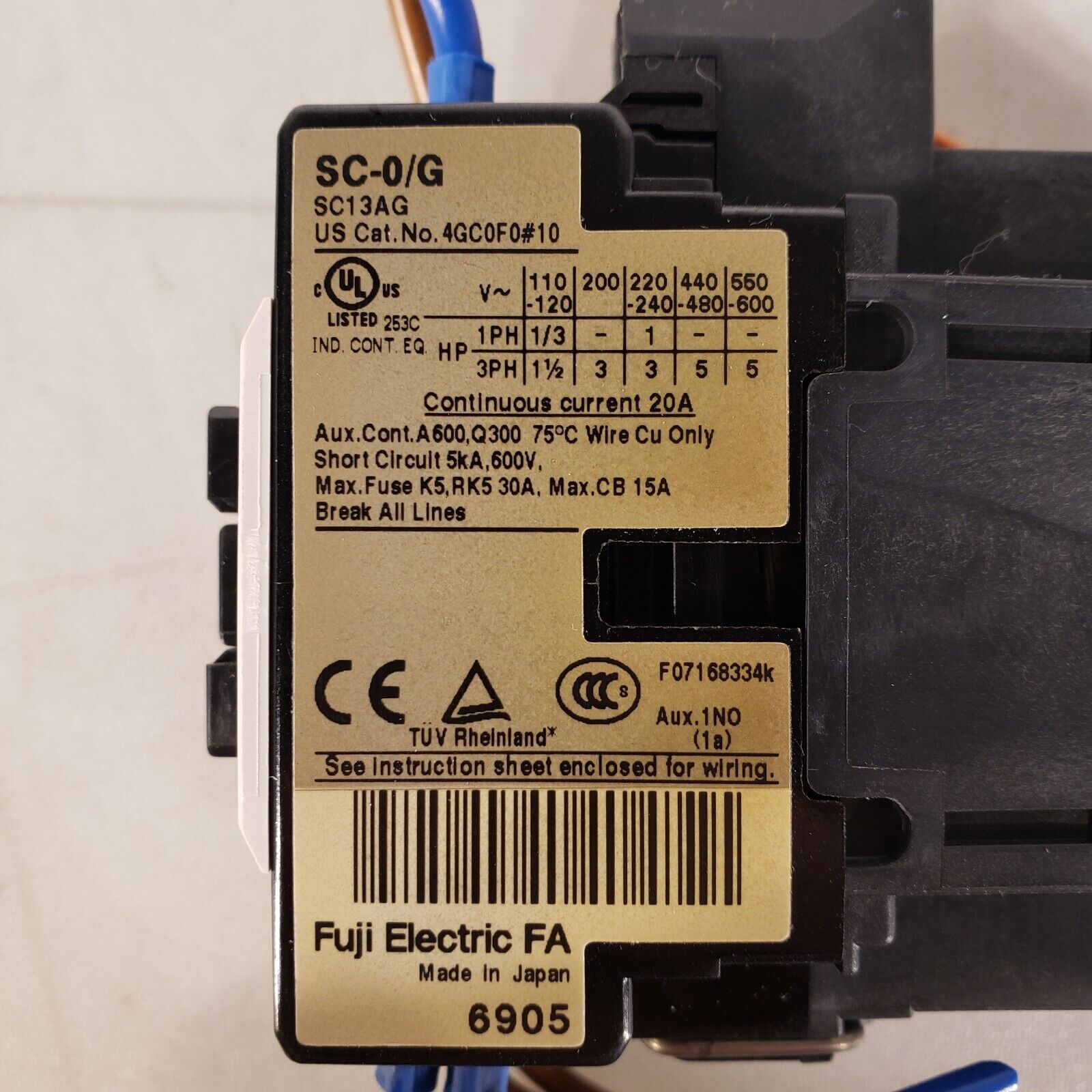 Fuji Electric SC-0/G Contactor 24V DC Max 20A 3 Phase 4GC0F0#10.