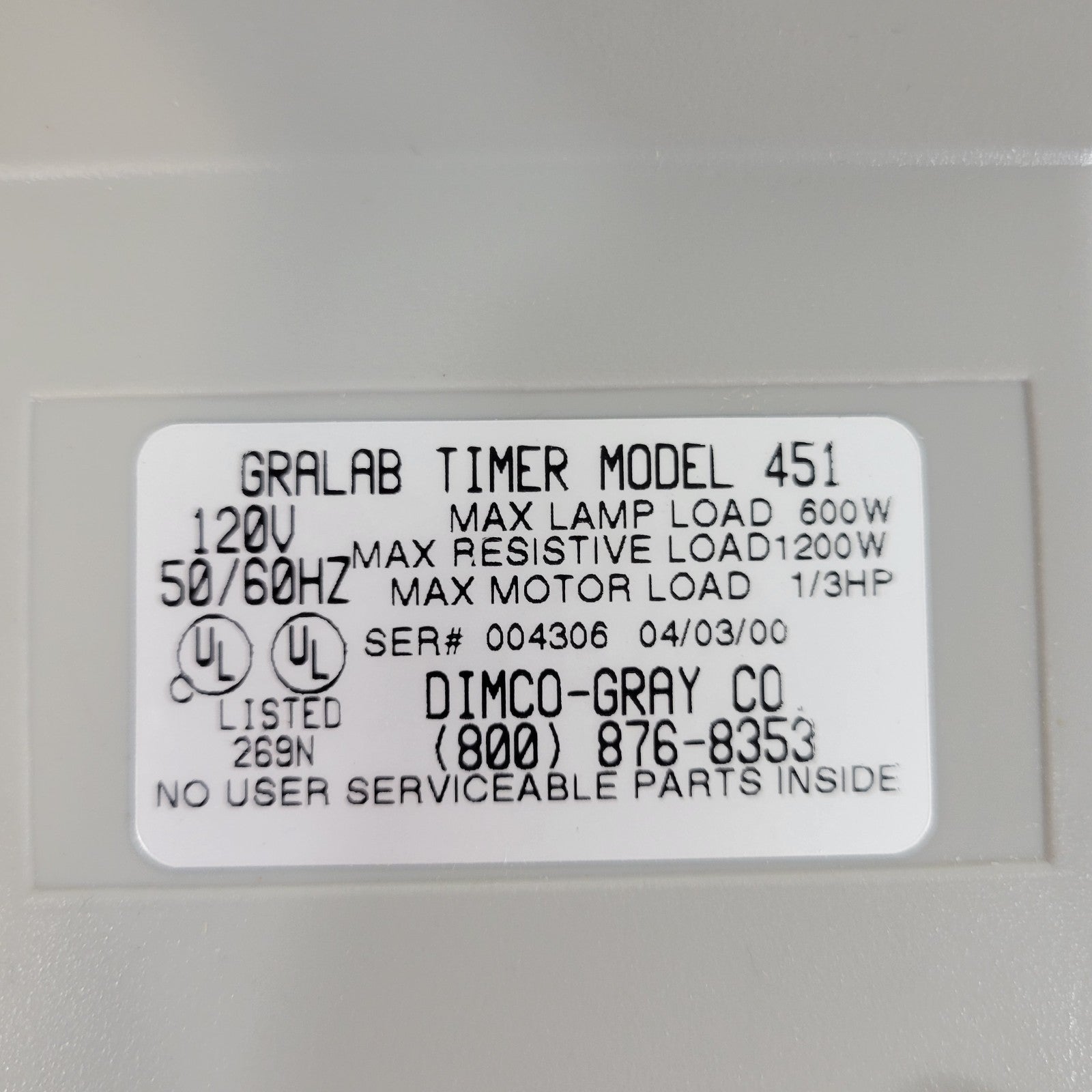 GraLab 451 99-Minute Electronic Timer Model Single or Continuous Cycle Switching