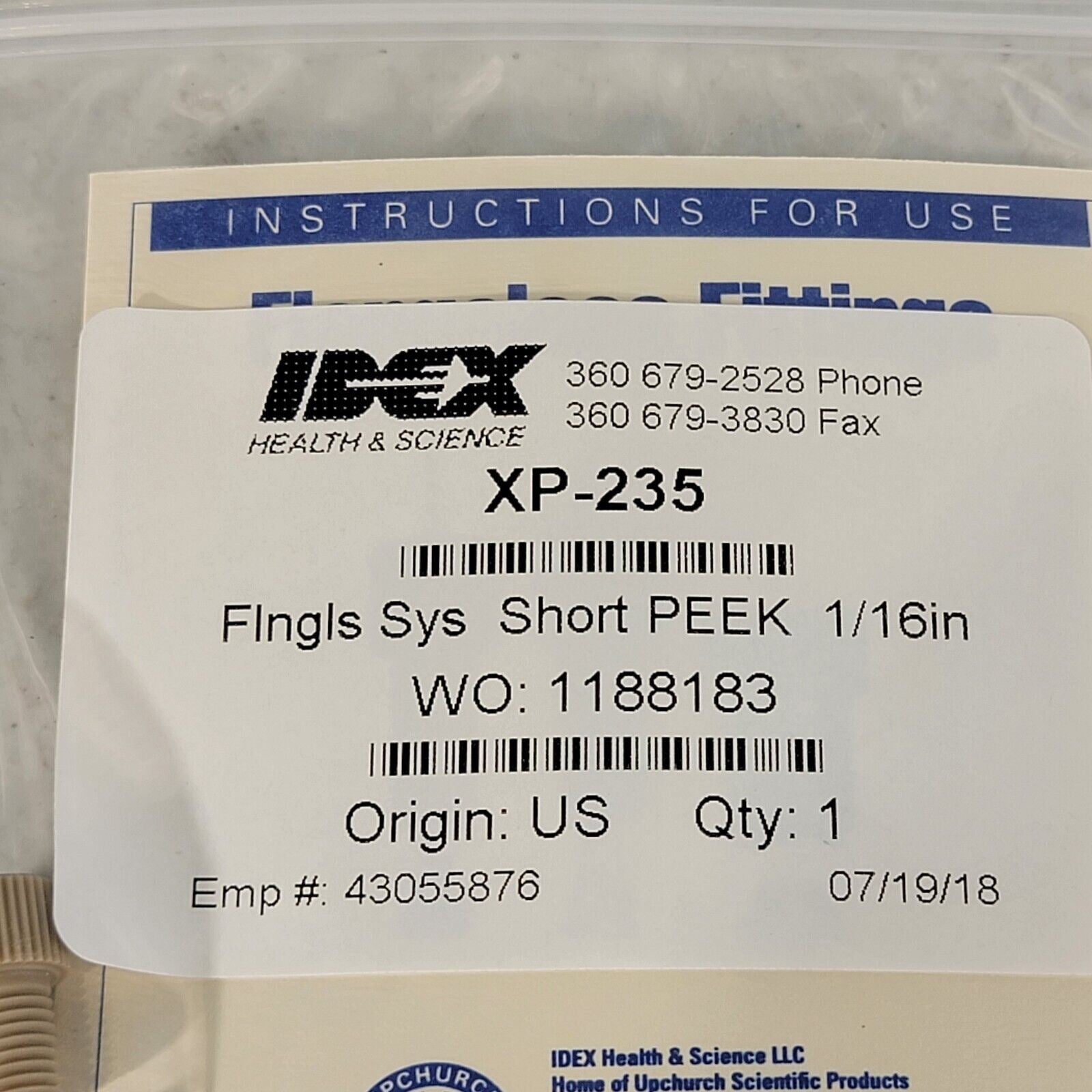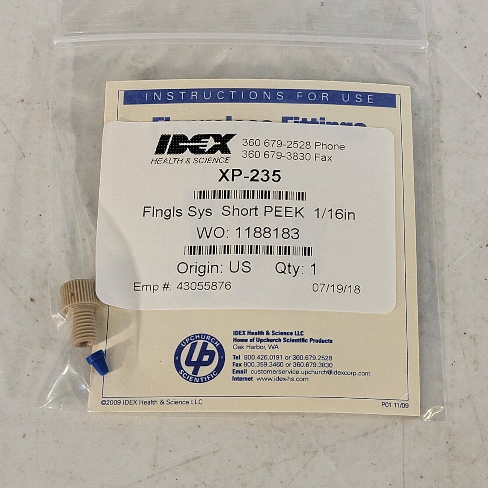 IDEX XP-235 Flangeless PEEK Fitting 1/16" Short Head