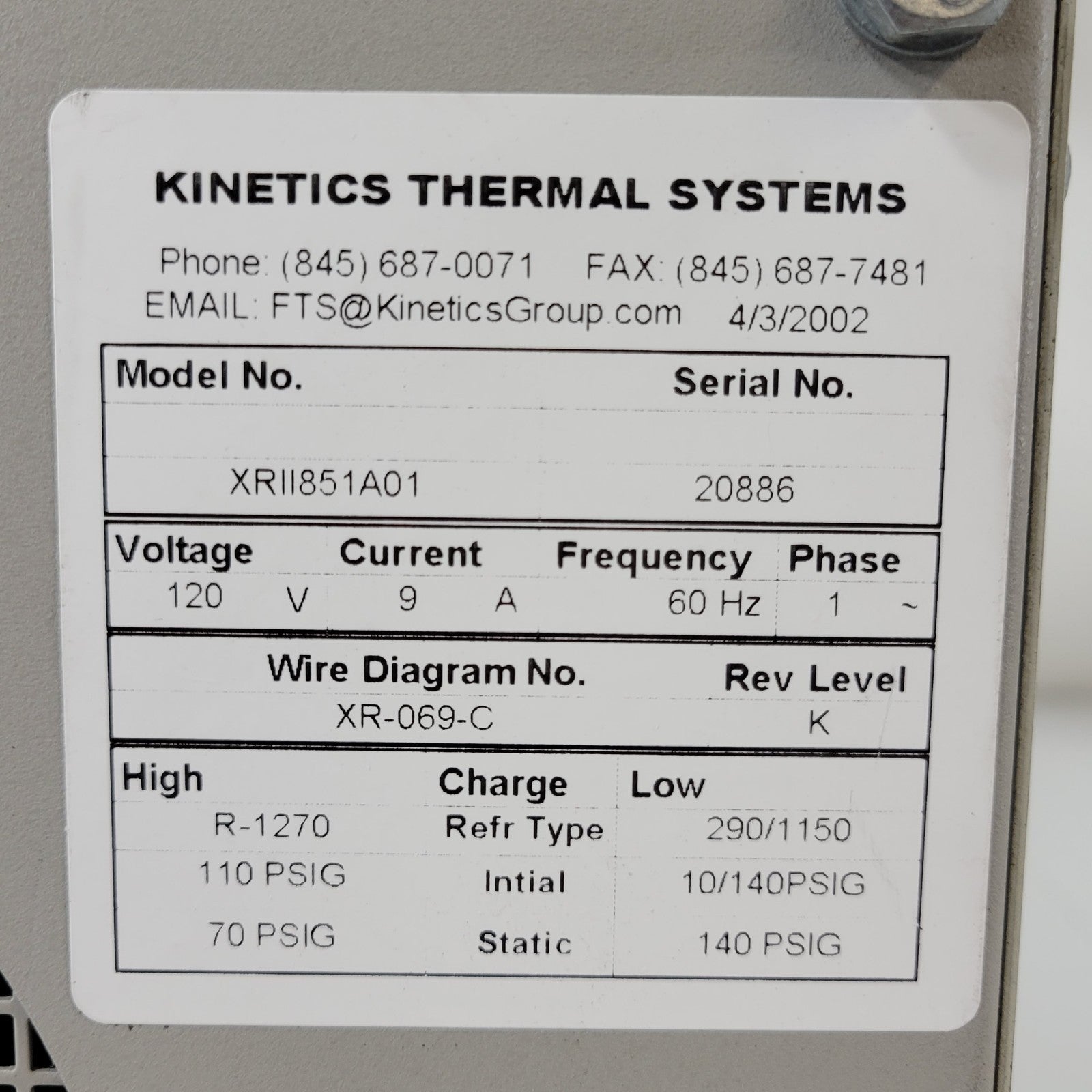 Kinetics XRII851A01 Air-Jet Sample Cooling System 15ft Tube Temperature Control