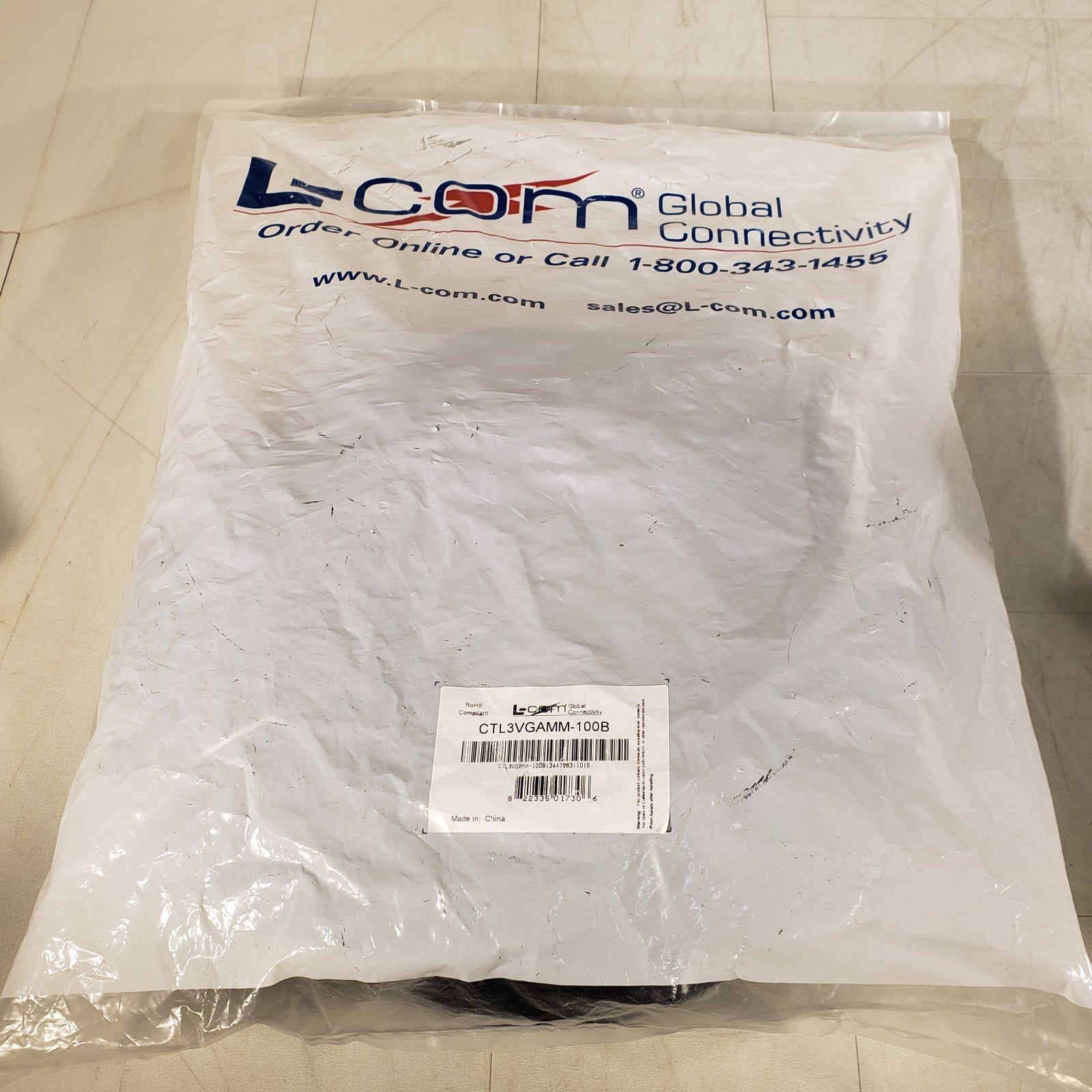 L-Com CTL3VGAMM-100B Premium S VGA Cable, HD15 Male / Male Black 100 ft