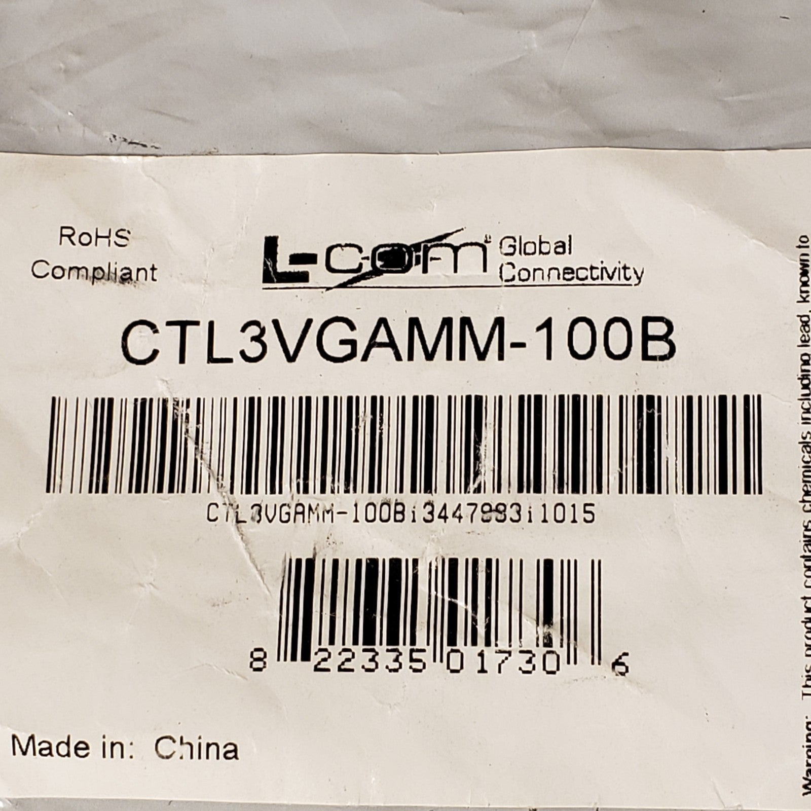 L-Com CTL3VGAMM-100B Premium SVGA Cable, HD15 Male / Male, Black 100.0 ft