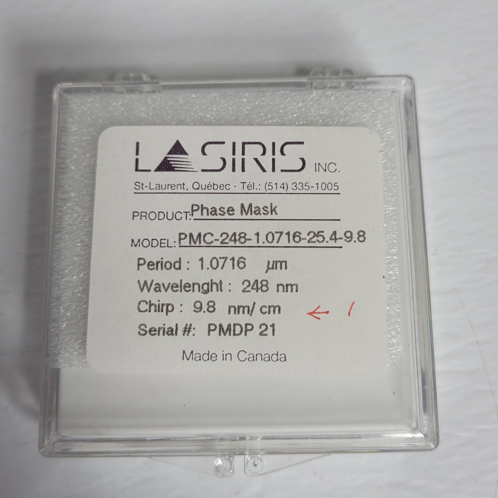 Lasiris PMC-248-1.0716-25.4-9.8 Phase Mask Optical Lens 248nm Wavelength