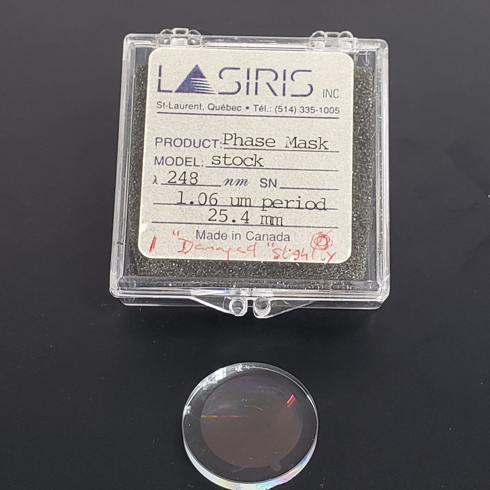 Lasiris Stock Phase Mask 248nm wavelengths 1.06um Period 25.4mm Dia Optical Lens