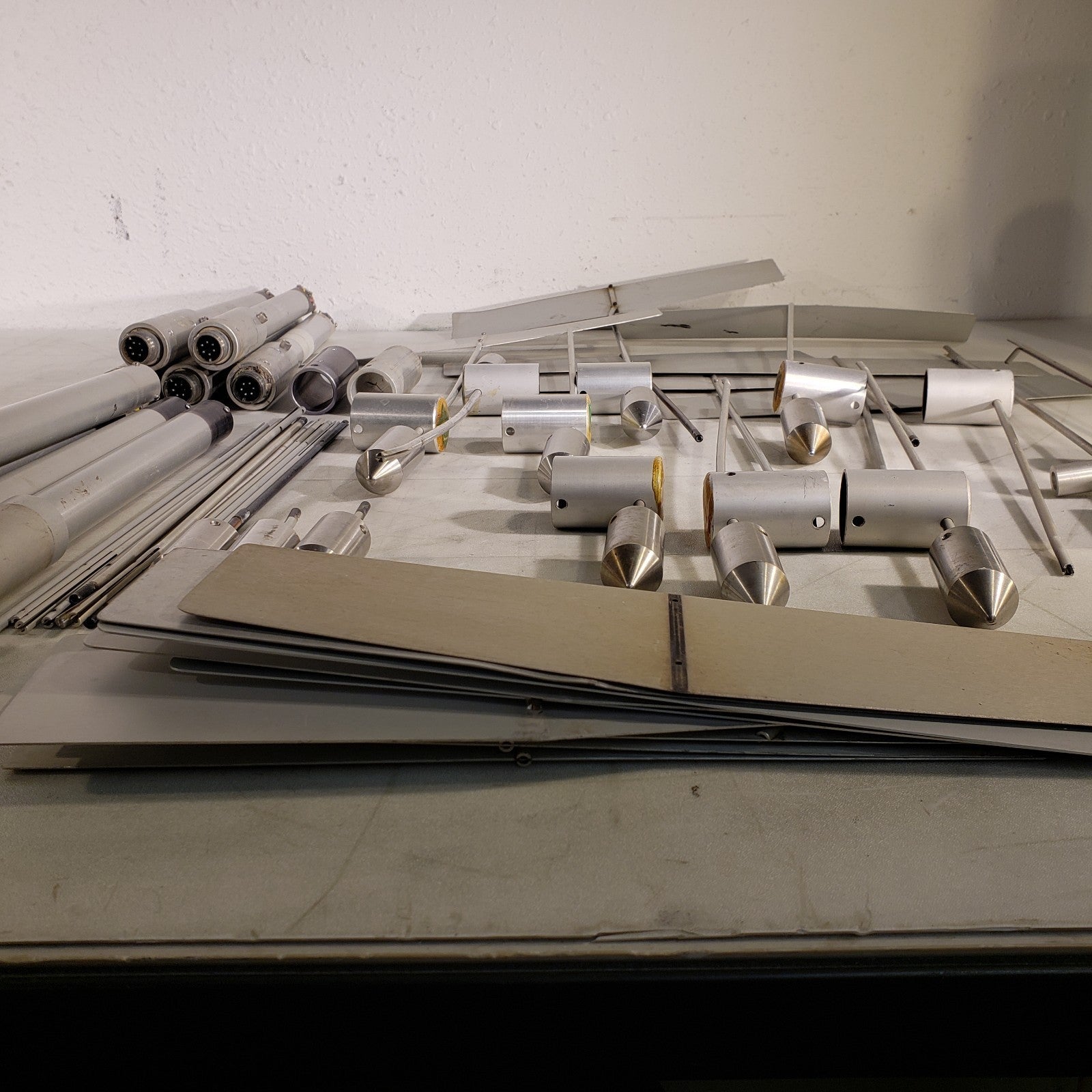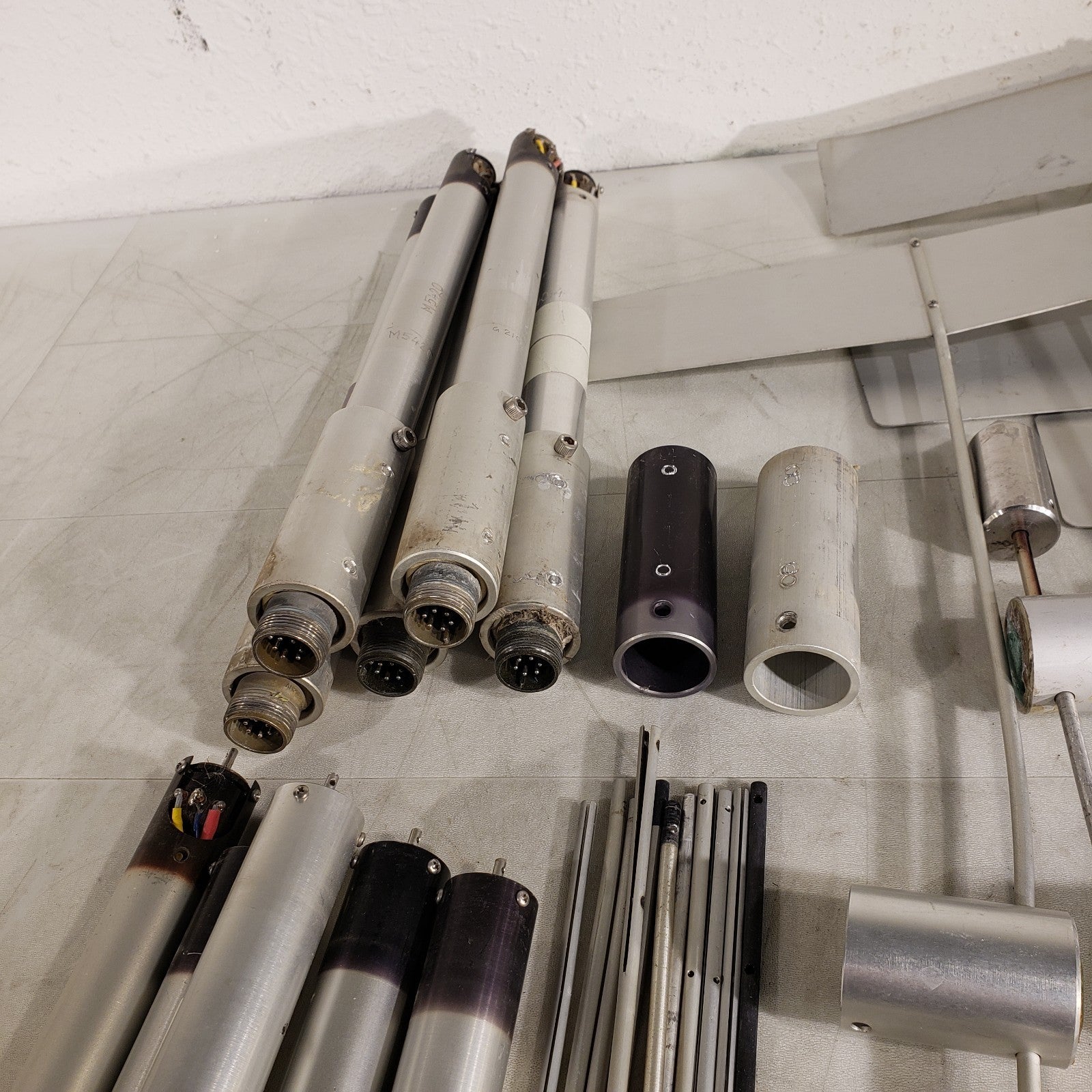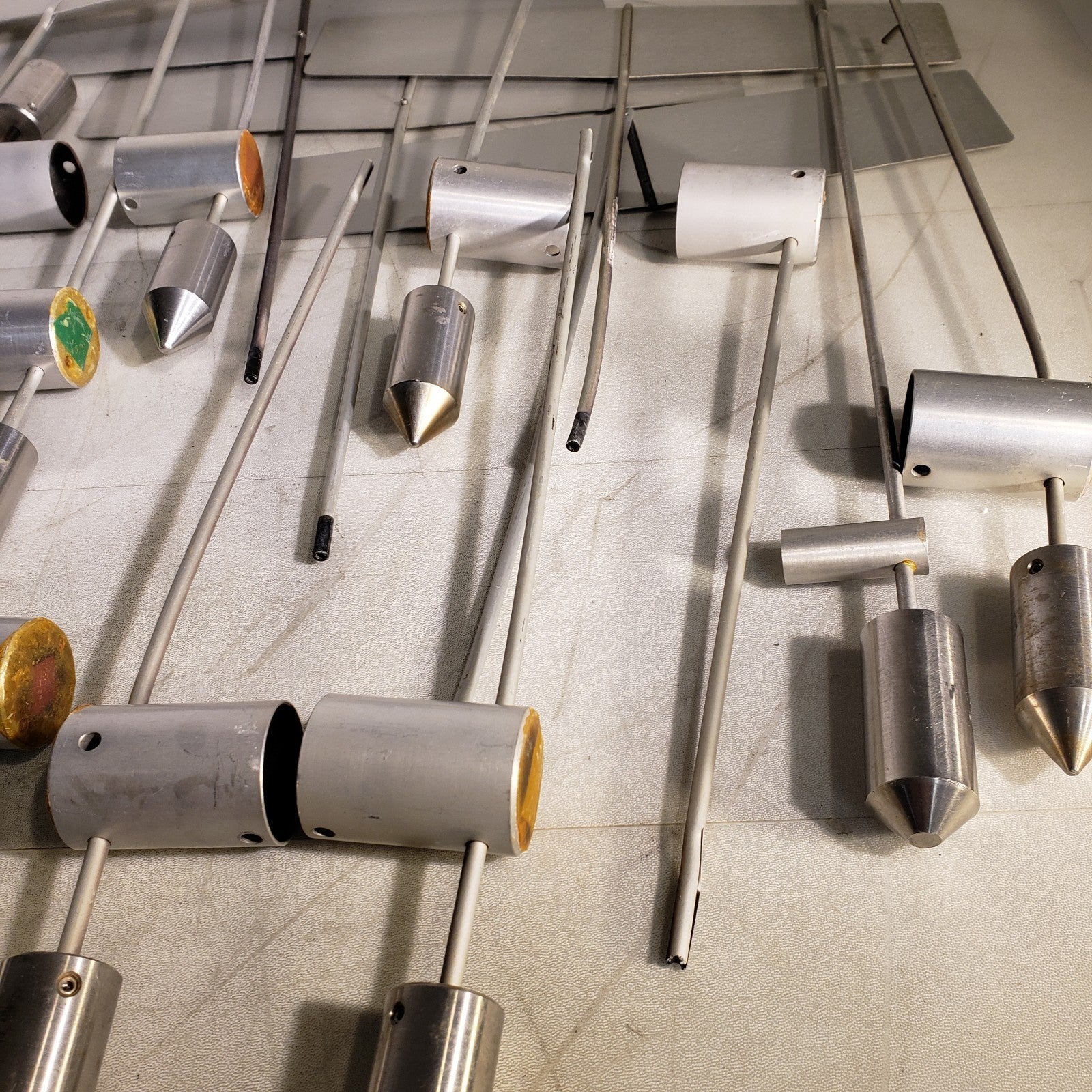 For parts, see photos. Most of the potentiometers on the sensors are stuck or worn down, the vanes on these are in rough shape. Could likely be salvaged into a few working probes in all.