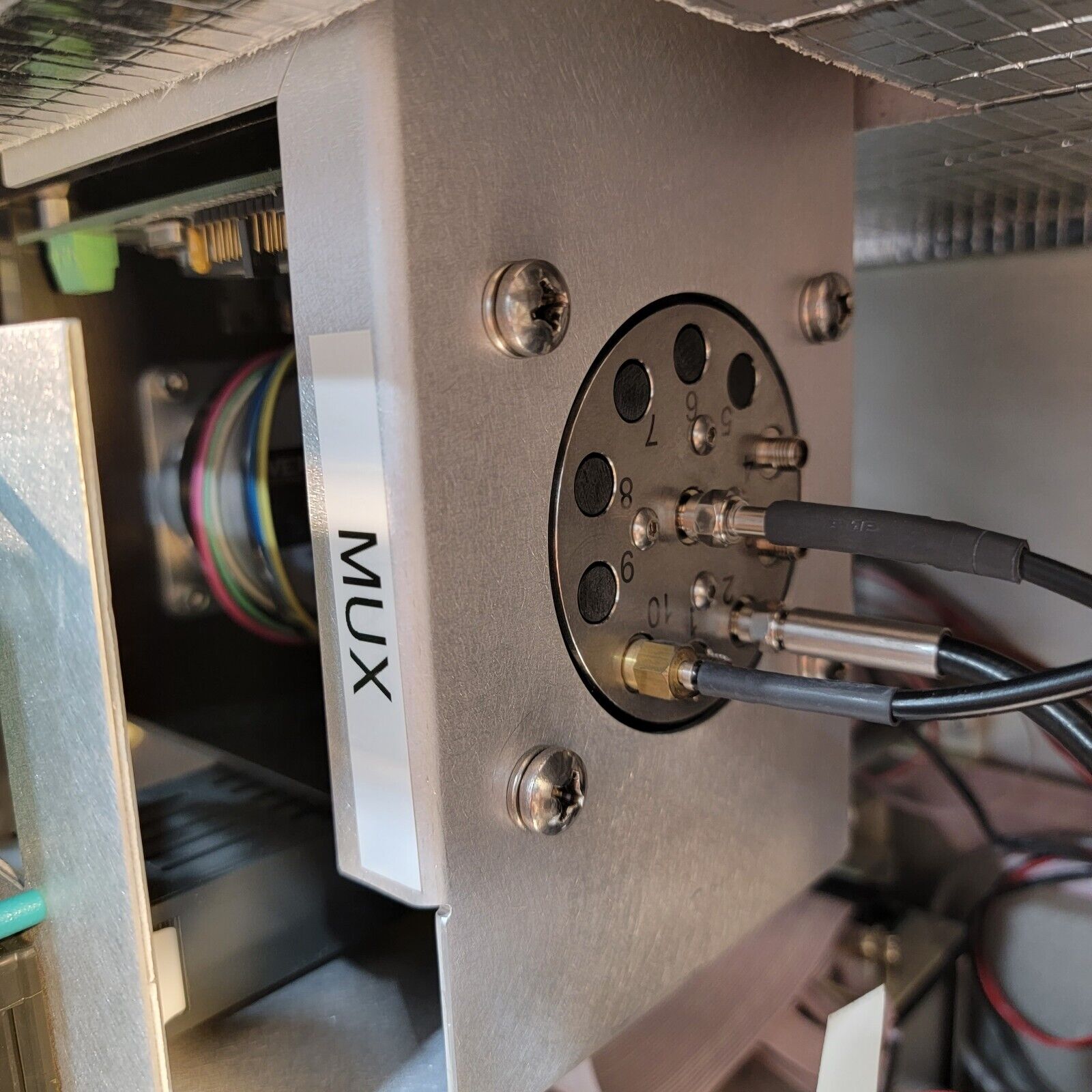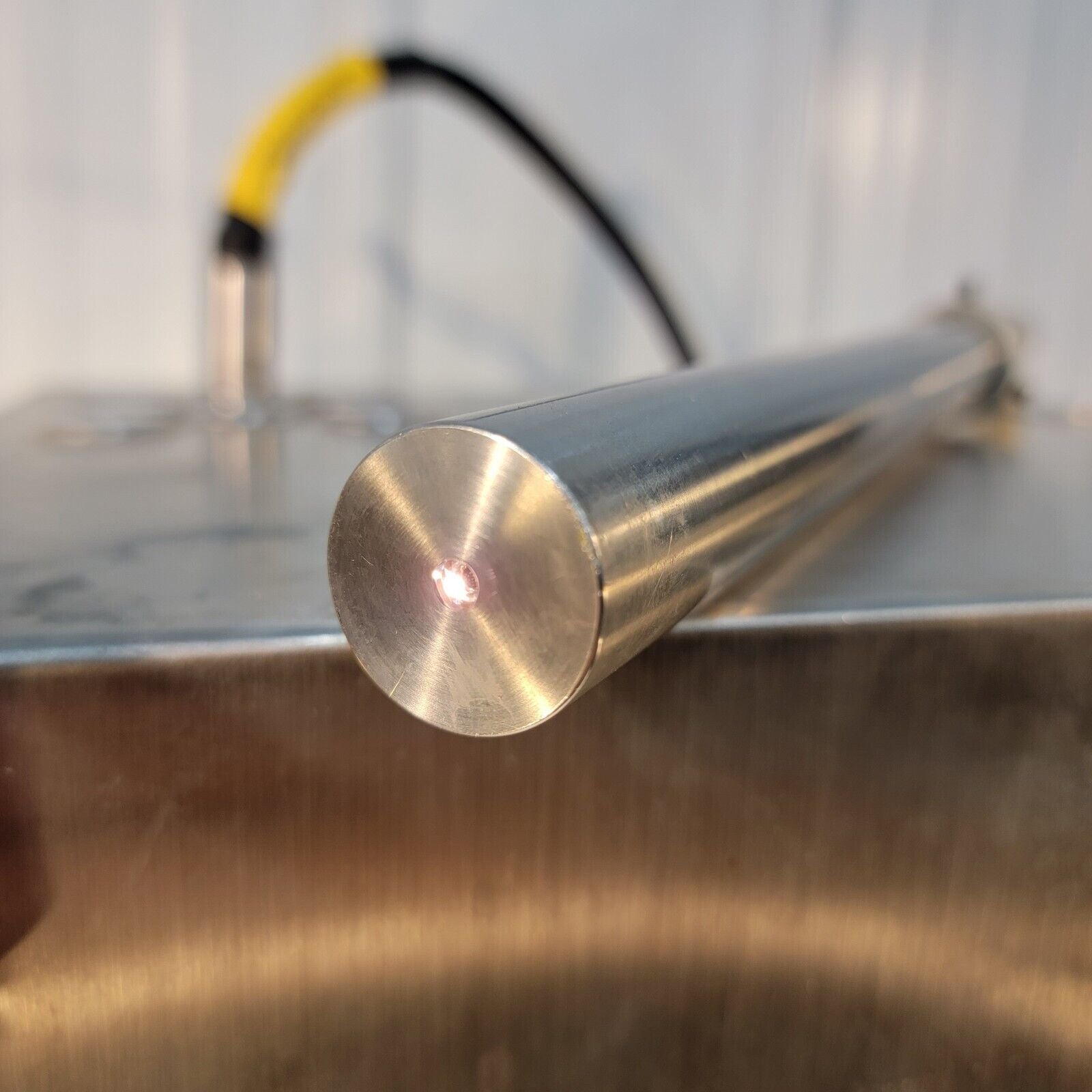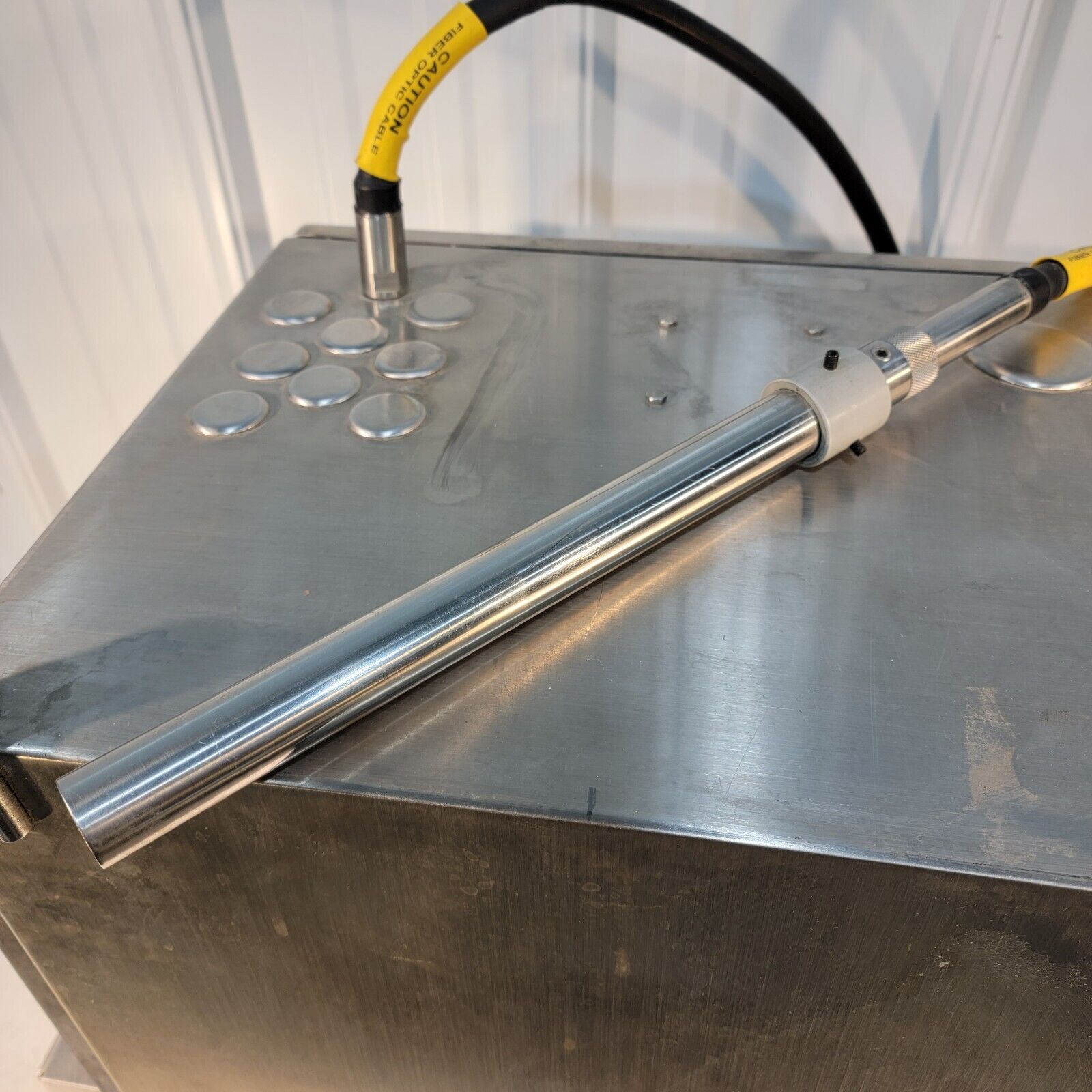This system has the micro-bundle fiber: it both emits light in the ring and collects the light back through the center bundle. The immersion probe has a cable length of just over 9 feet long. This is the fan-cooled version of the instrument, making it very simple to install. It runs on 115/230v (selectable). Includes the a wavelength scan range of about 800-2100nm (0.5nm data interval).