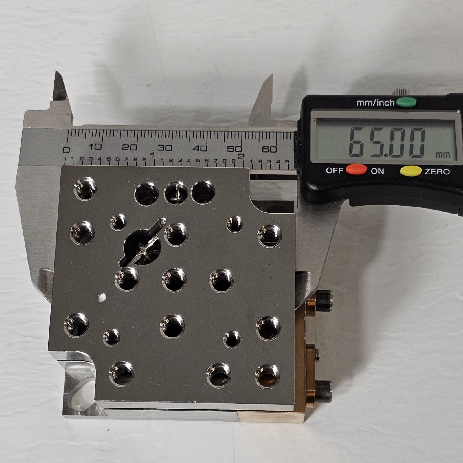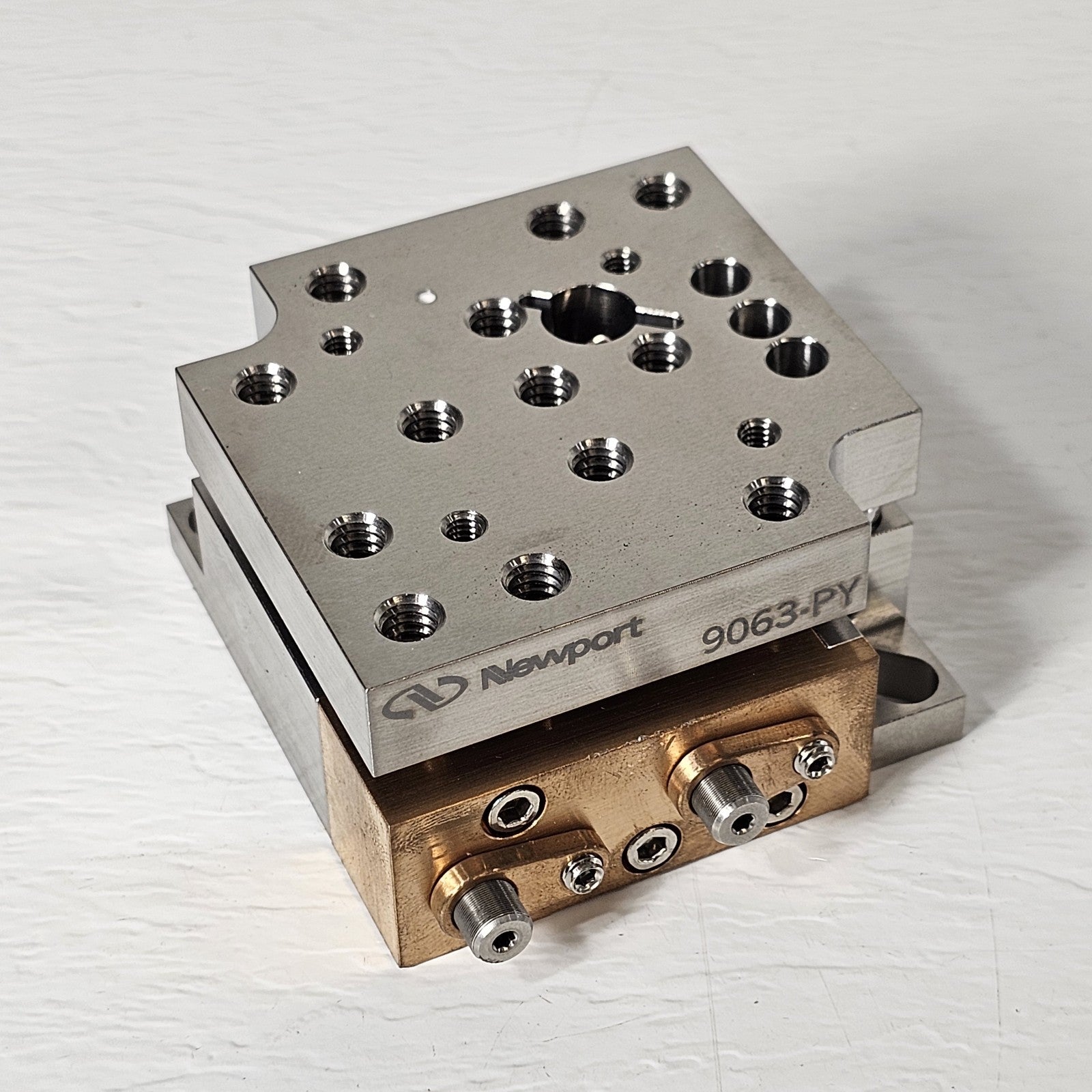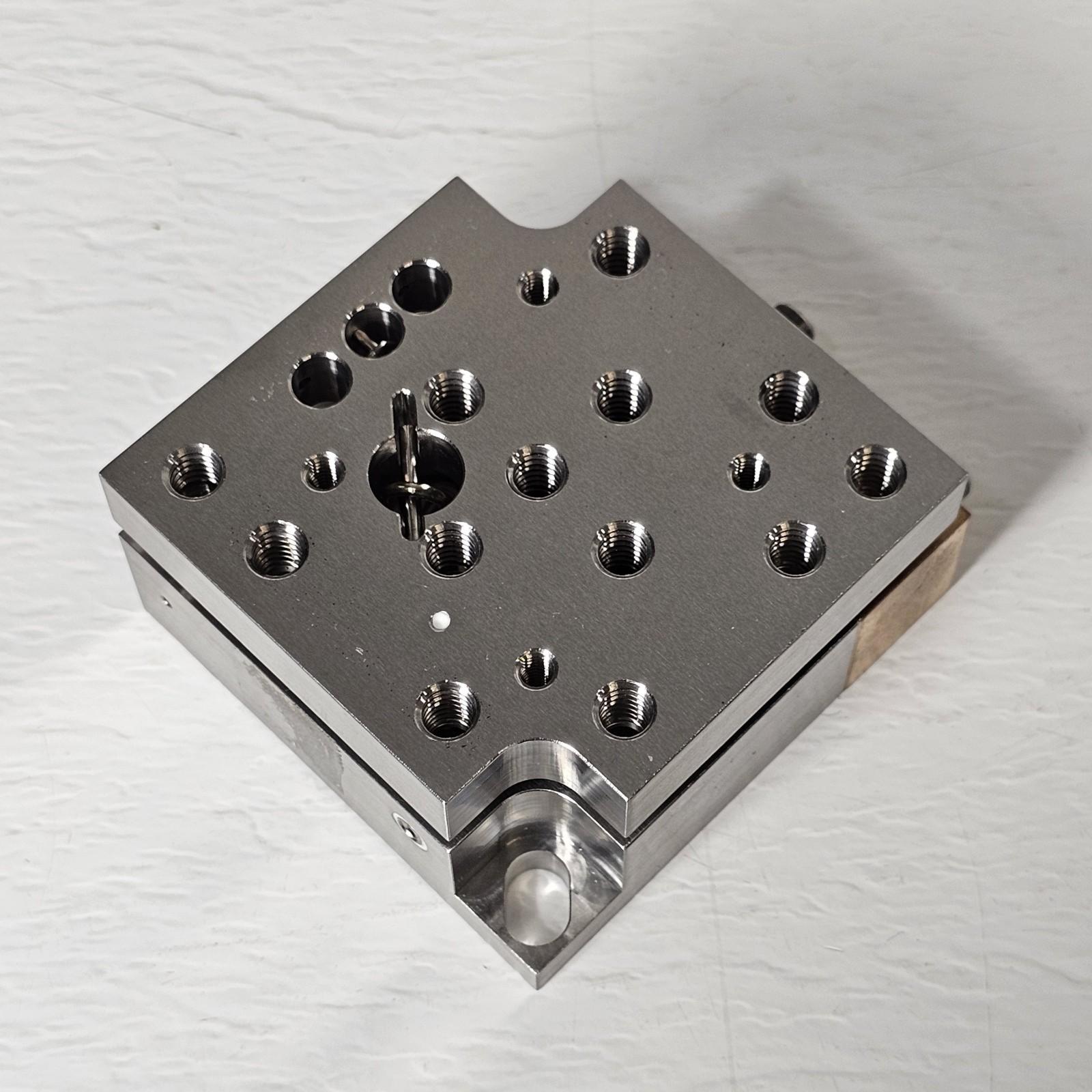 The 9063-PY Stainless Steel Tilt Platform is designed to provide precise Pitch and Yaw adjustments for optimal control over the orientation of mounted optics. The 9063-PY is a small 65 x 65 mm tilt platform with 8-32 threaded holes constructed out of Stainless Steel for superior stability. The 9063-PY also has locks for set-and-forget applications and is designed to fit the 9063-COM stage.