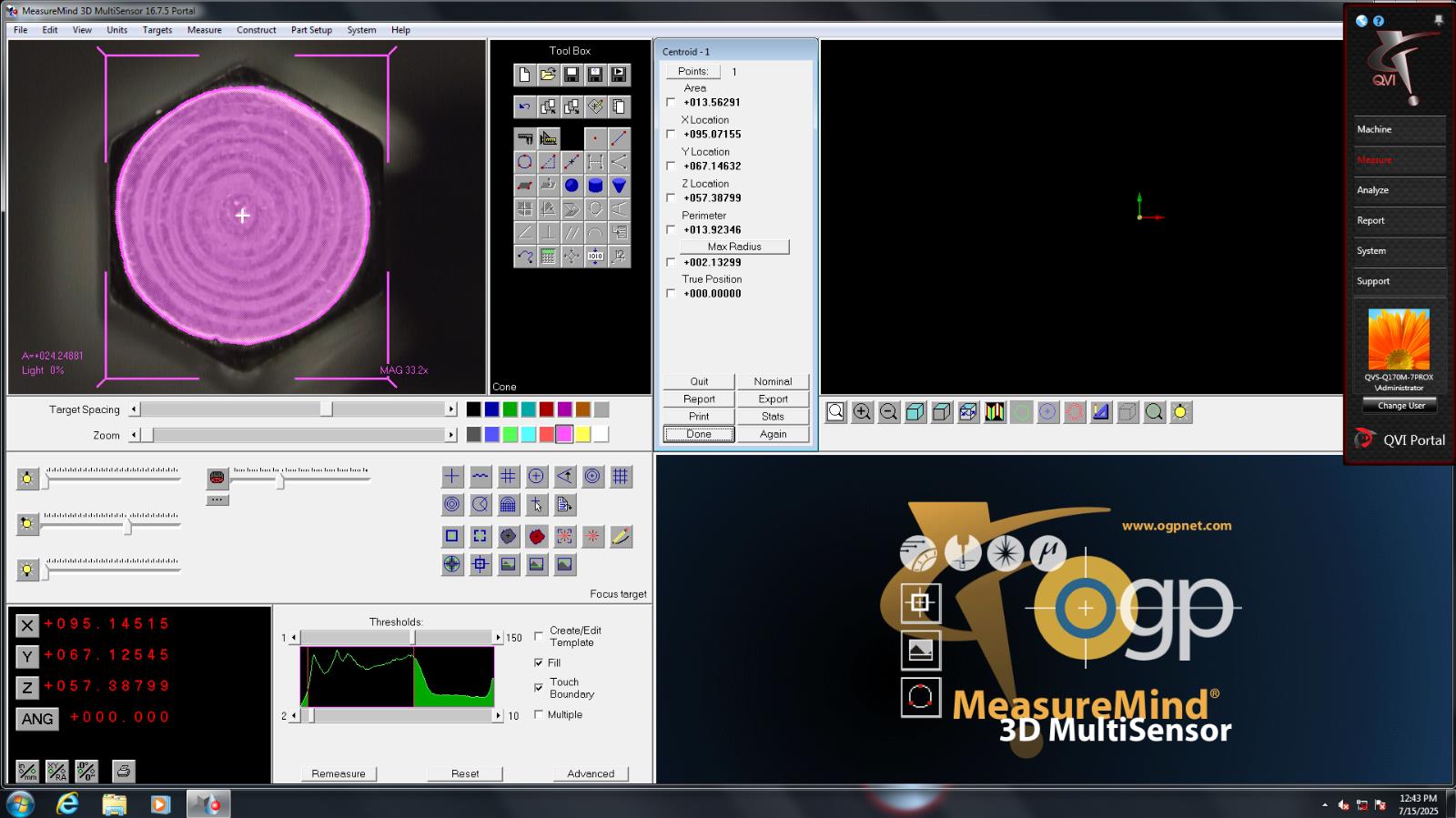 1x) Smartscope Flash CNC 200 (X-Y-Z Travel 200mm x 200mm x 150mm)1x) Windows 7 Control Computer