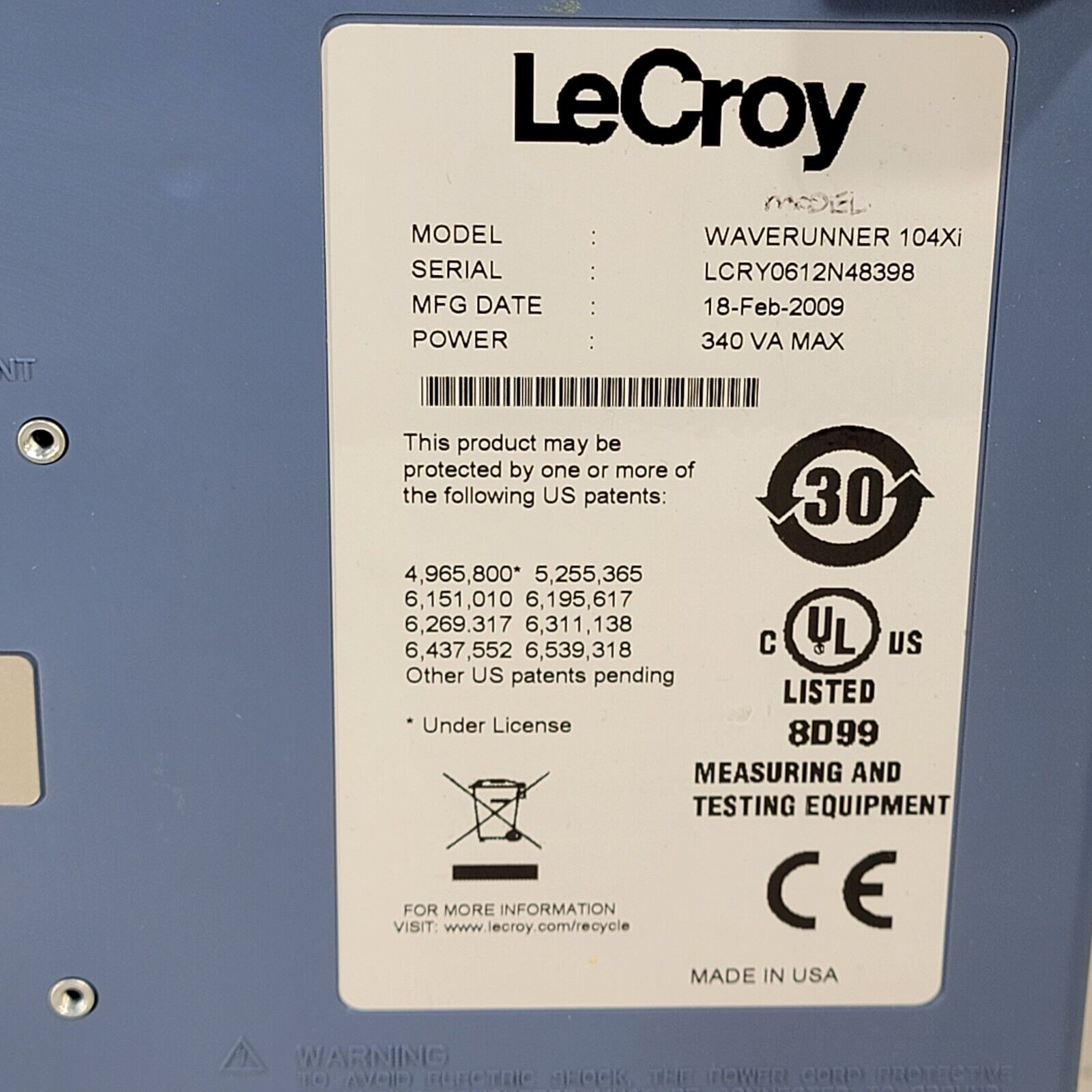 READ DESCRIPTION- LeCroy WaveRunner 104MXi 1GHz Oscilloscope 10 GS/s 4-Channel HDTV XMAP
