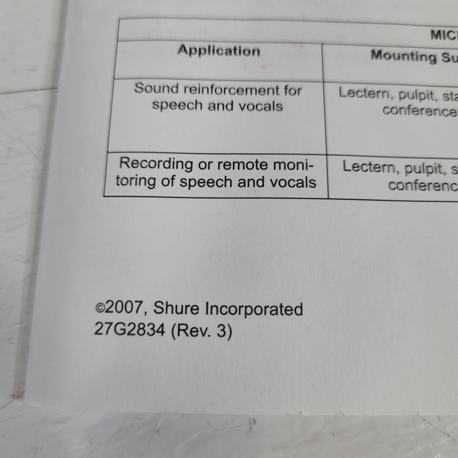 SHURE MX300 User Guide 27G283834 Rev 3 SCM800/SCM800E User Guide 27D8469 Rev 1