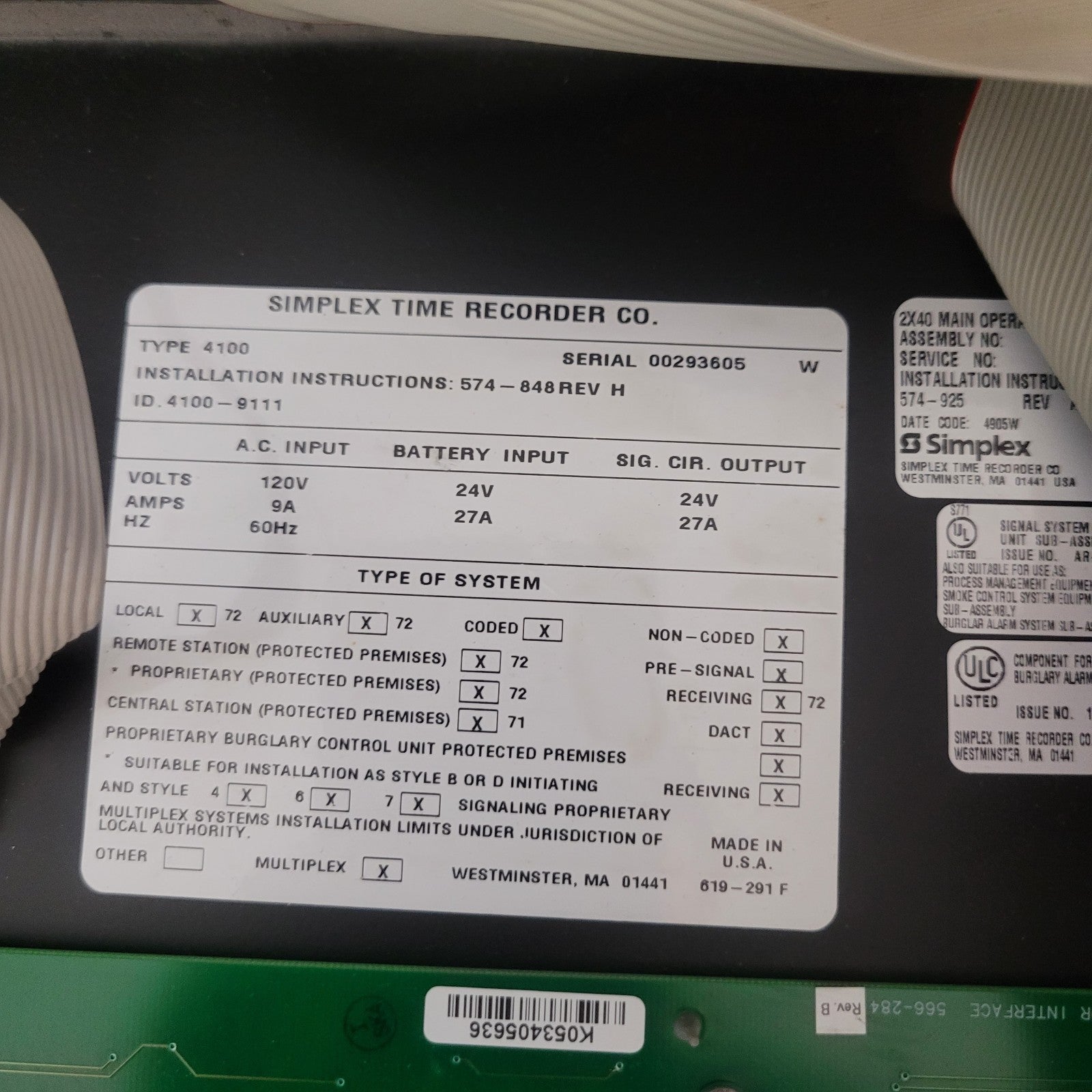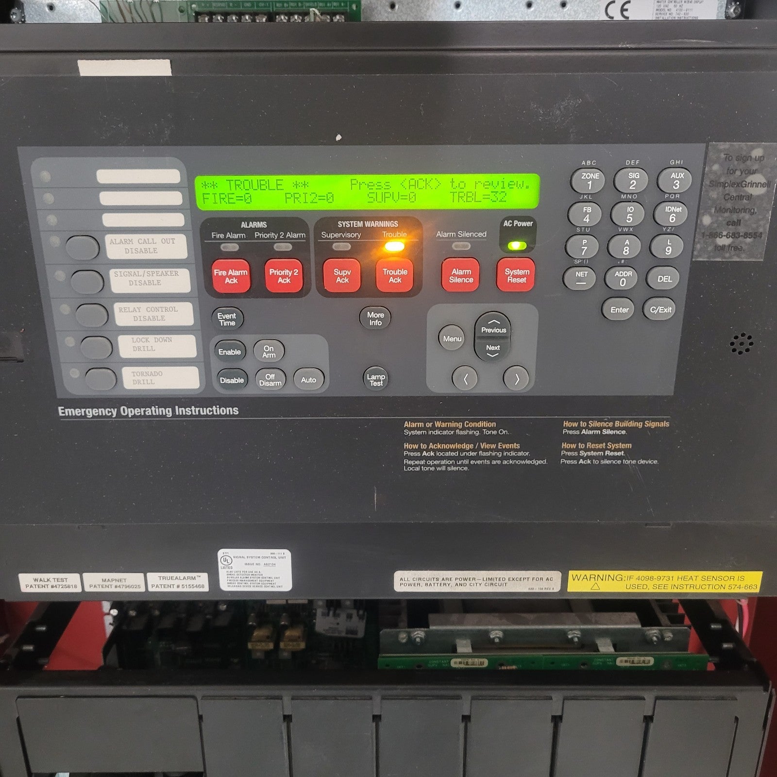 Simplex 4100 TrueAlarm Fire Alarm Control Panel Cabinet Assembly TESTED