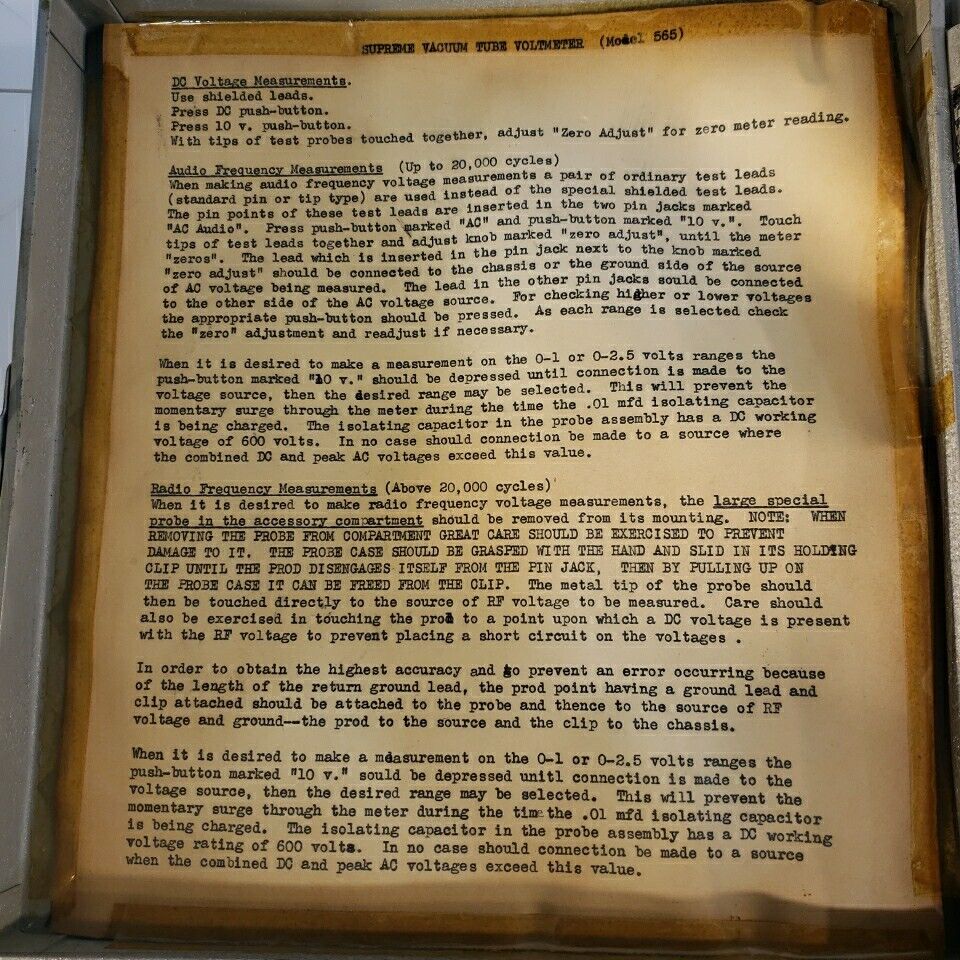 Supreme 565 Vintage Electron Vacuum-Tube Voltmeter Tester Instrument Co.