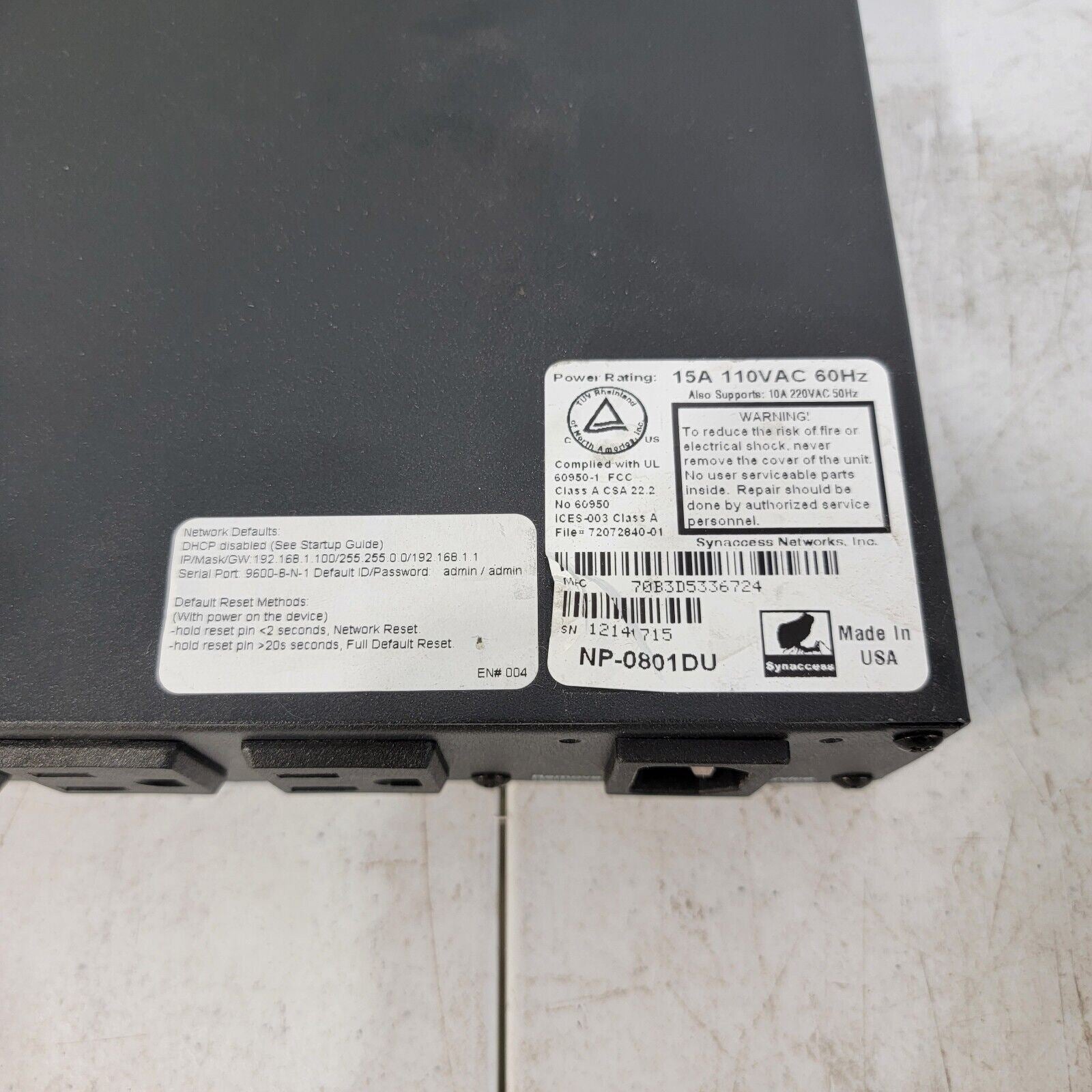 Synaccess NP-0801DU Remote Power 8 Switched PDU w/ Current Meter.
