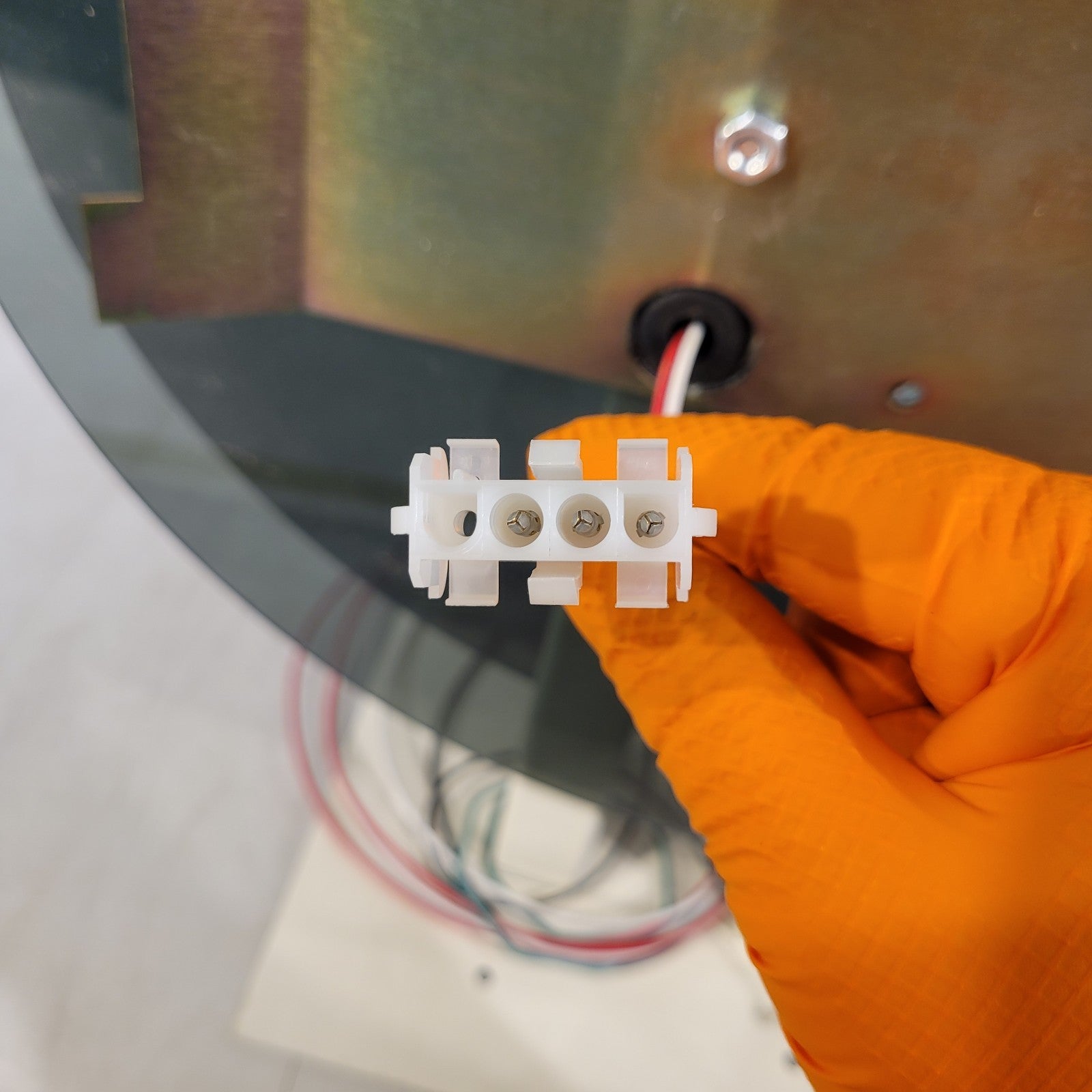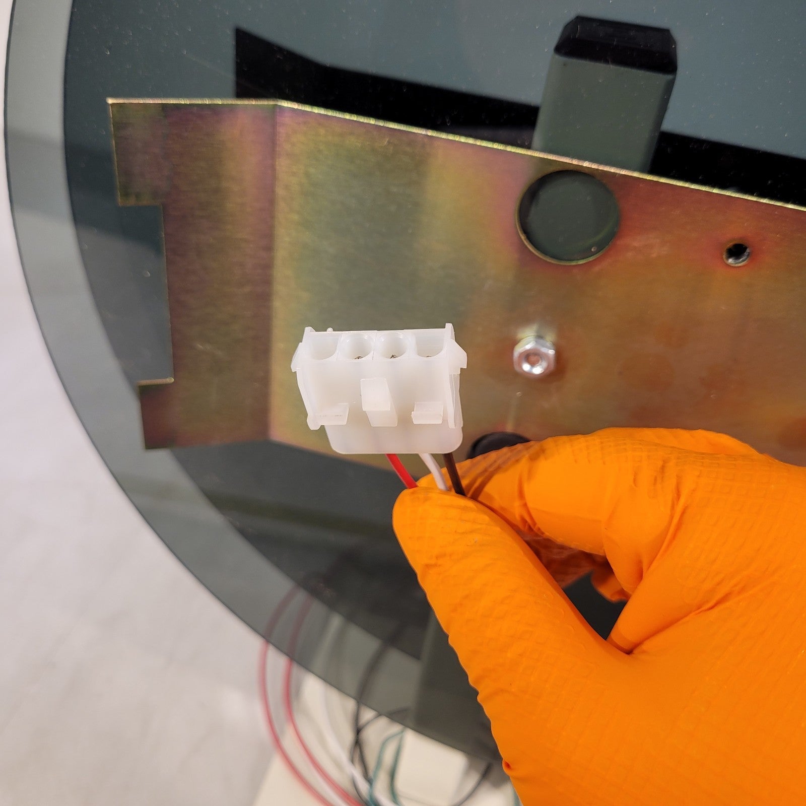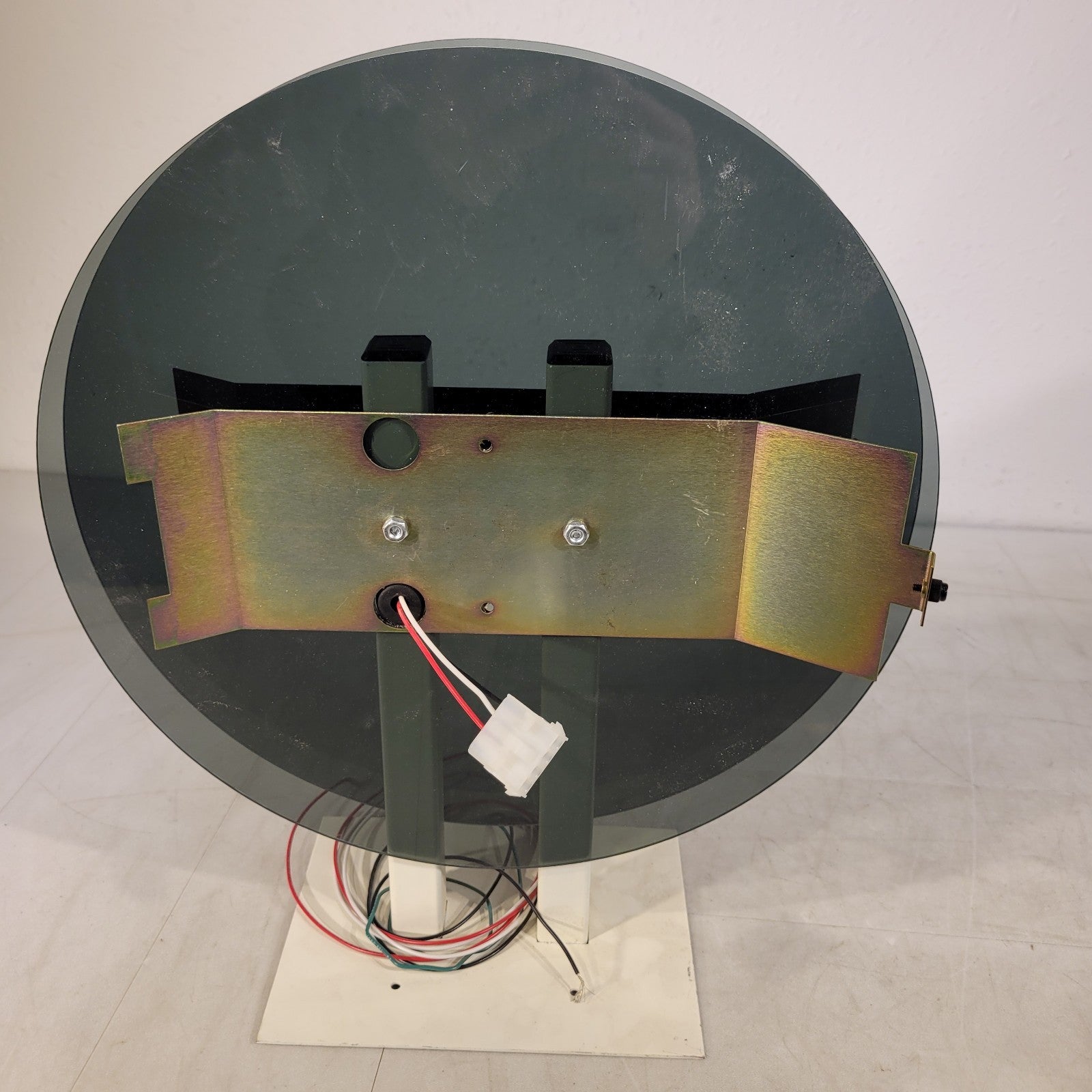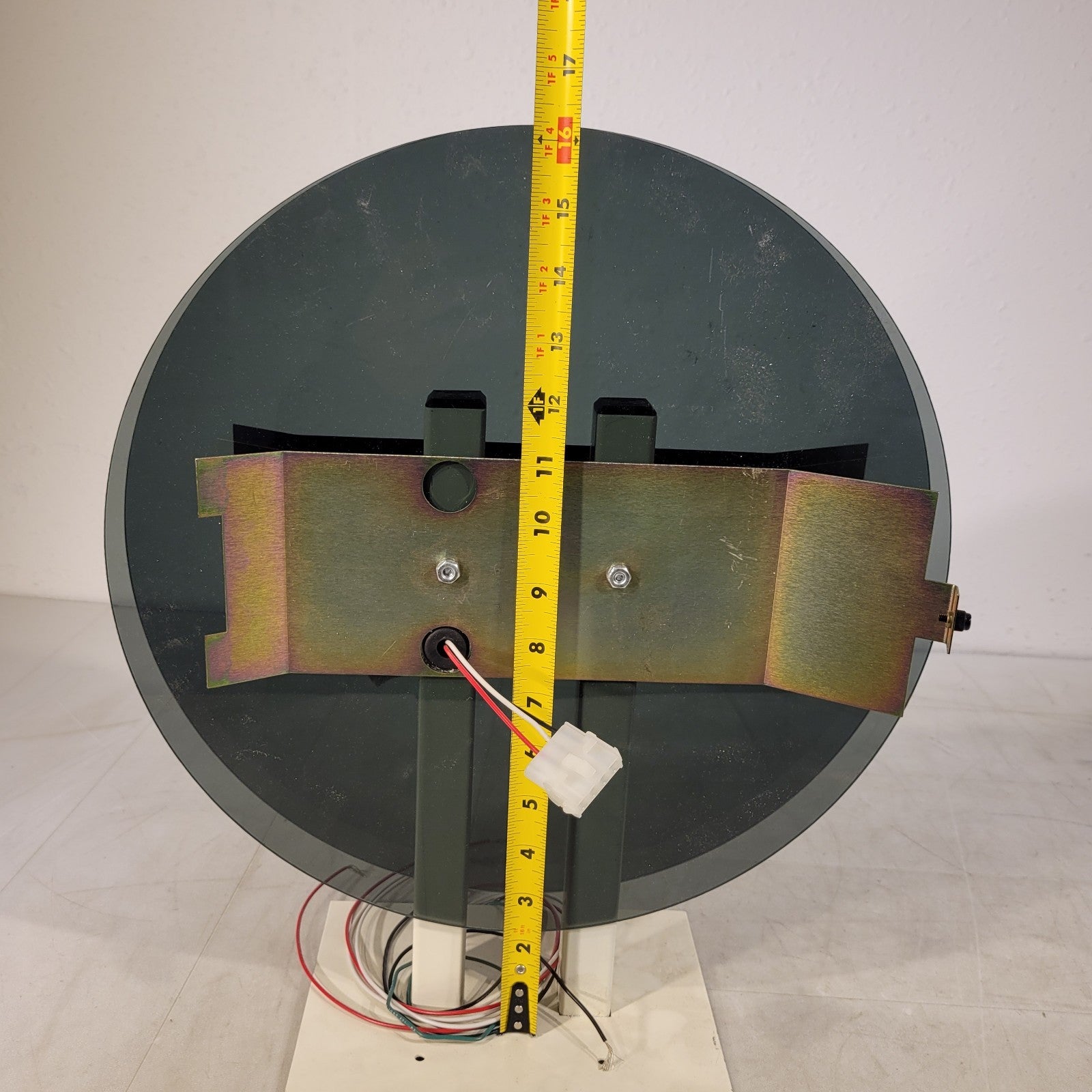 This appears to fit either telecor or midwest round clocks. This unit has room for 2 clocks, 1 on each side and connects to each clock via 3 pin molex collector. The backplate material is plastic and has a diameter of 14.25".