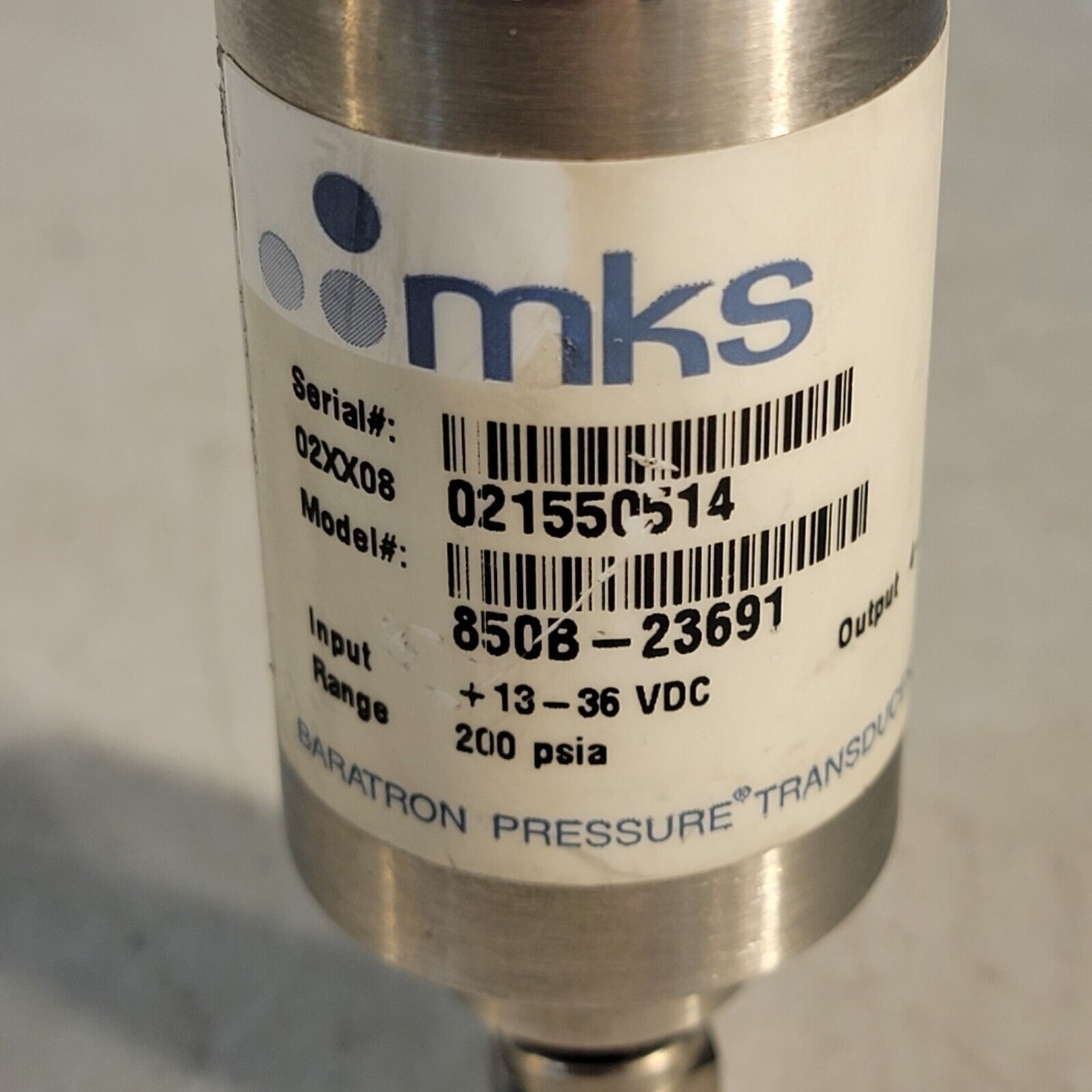 TESTED- MKS 850B-23691 Baratron Pressure Transducer 200 psia 4-20mA