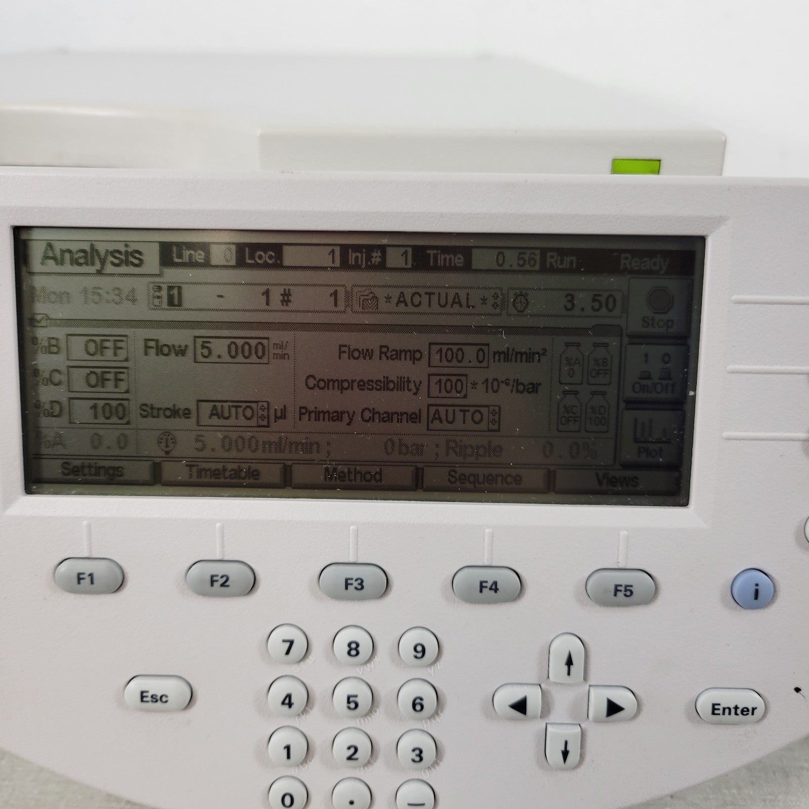 Used see photos. Tested working with Agilent 1100 gameboy controller (not included in purchase) and interacted with. See 2nd and 3rd photos for for us using the gameboy controller with this pump. Pump sounds to be in good shape when running, and interacted well.