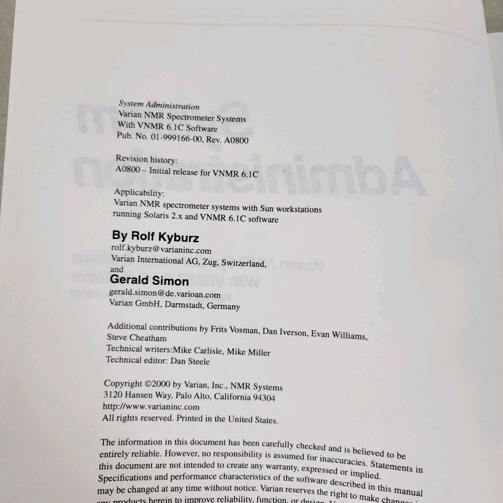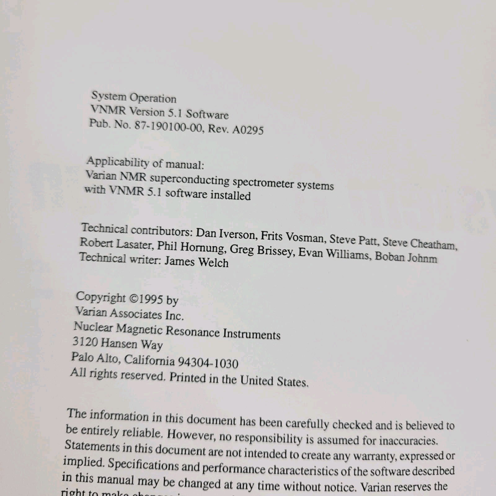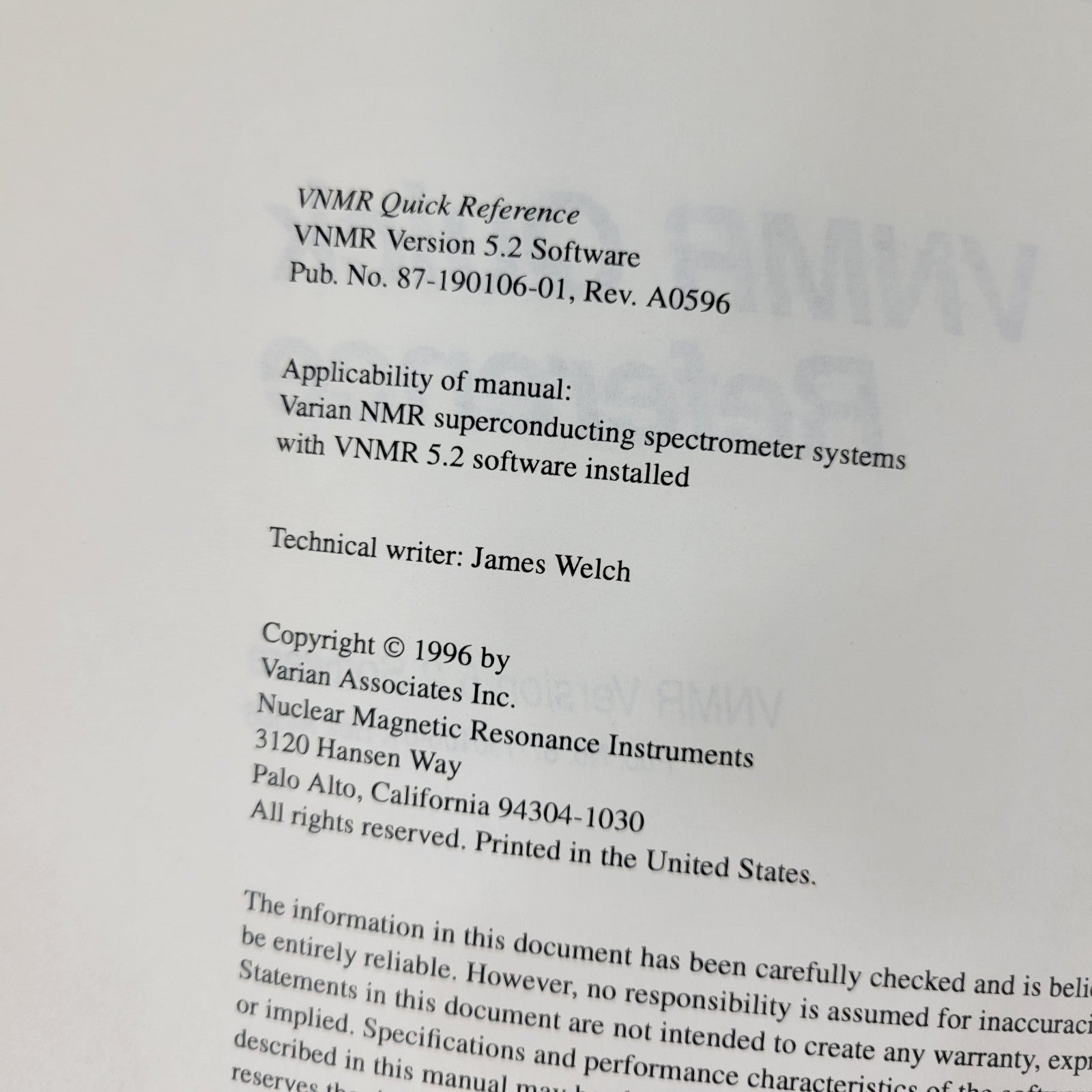 Varian NMR Nuclear Magnetic Resonance Spectrometer Manual Collection v5.1 v6.1C