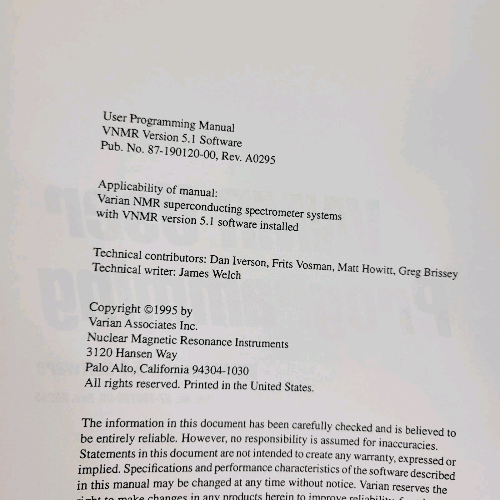 VNMR User Programming for VNMR v5.1 Software (1995)
