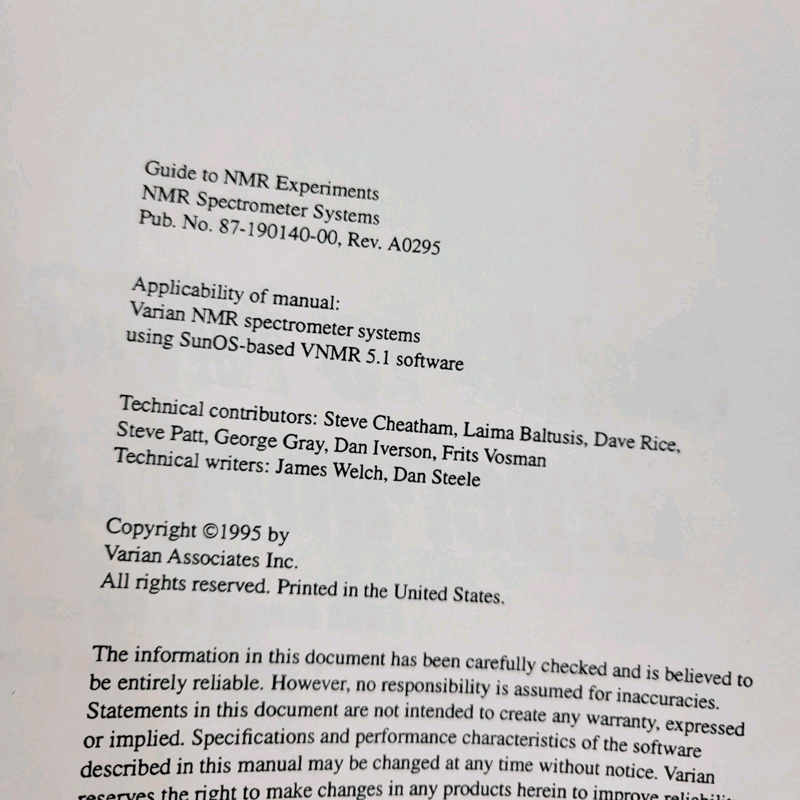 Guide to NMR Experiments v5.1 (1995)
