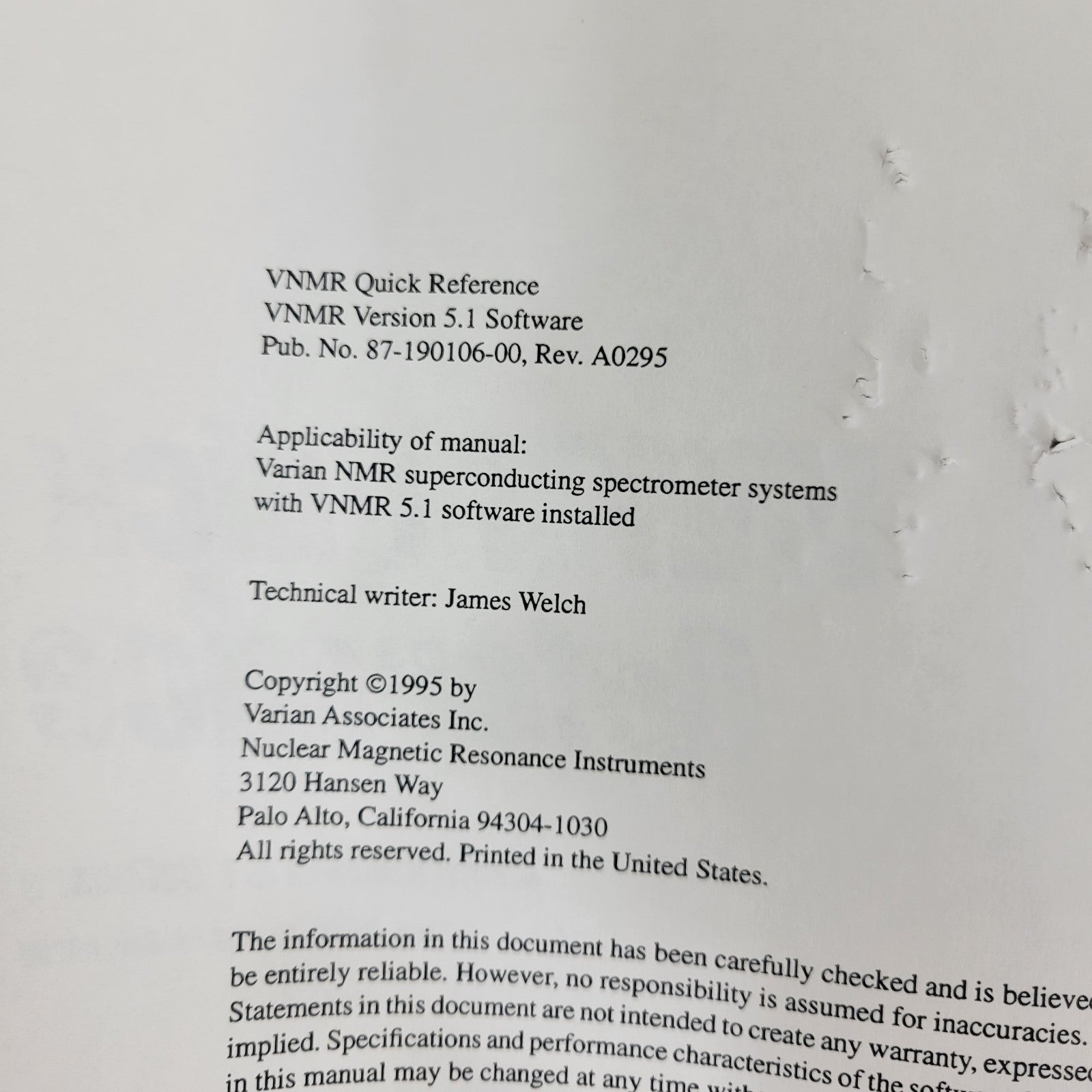 VNMR Quick Reference Guide v5.1 (1995)